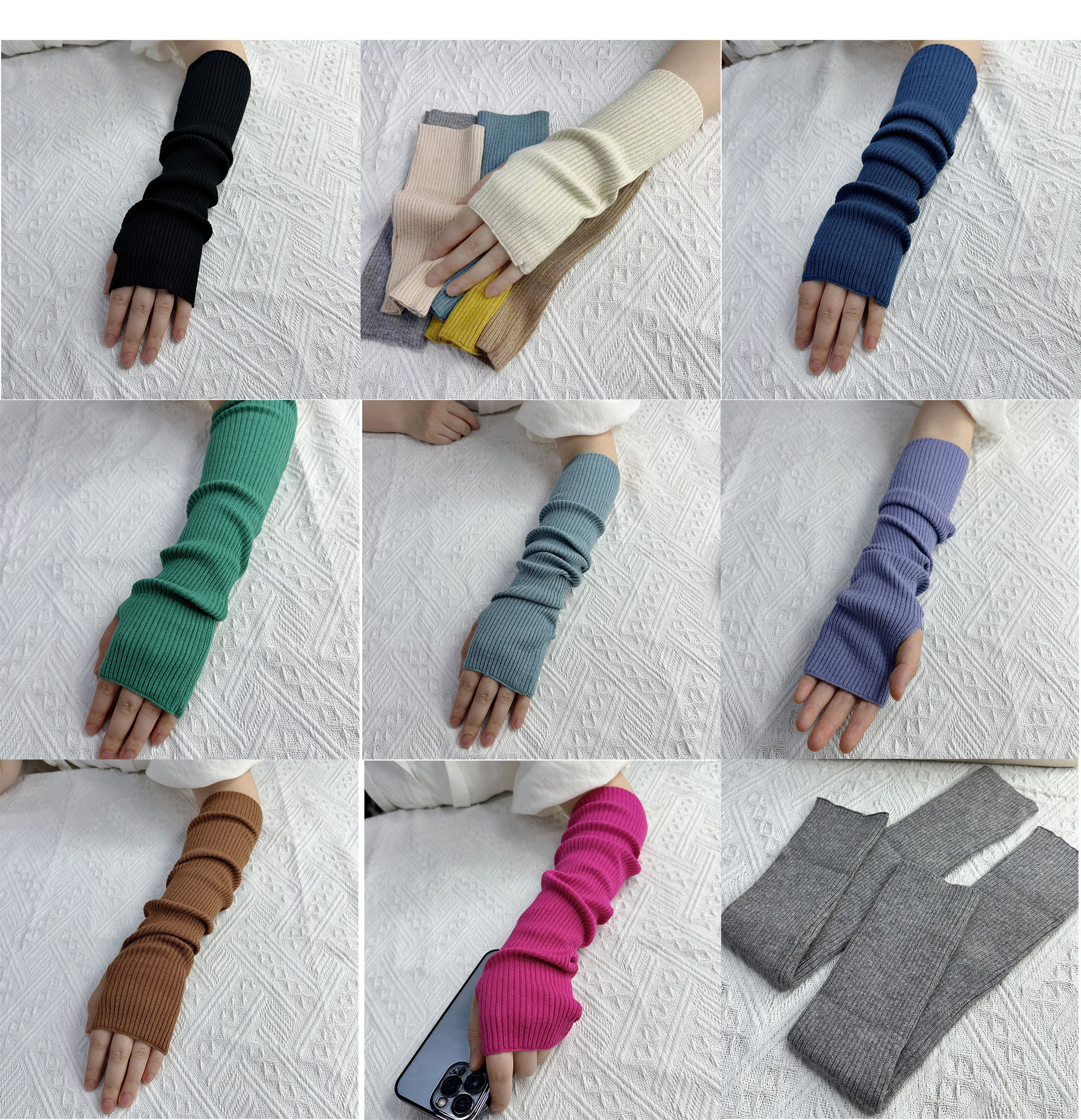 모조 태양 더미 소매 따뜻한 니트 양모 반팔 여성 가을, 겨울 탄성 핑거리스 터치 스크린 방한 팔 장갑스토어 가기