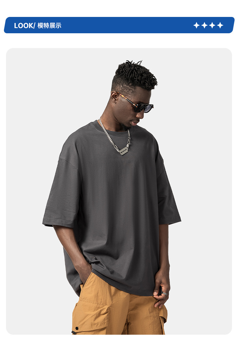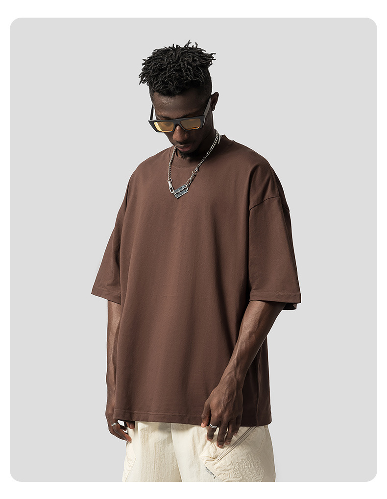미국 거리 유행 무거운 260g 단색 짧은 소매 남자의 안개 지구 색 티셔츠 느슨한 플러스 사이즈 에 패션 반 소매스토어 가기