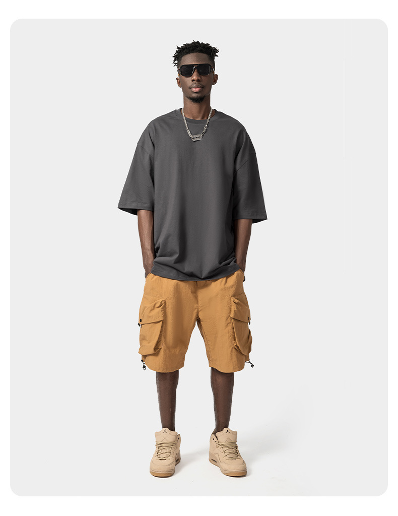 미국 거리 유행 무거운 260g 단색 짧은 소매 남자의 안개 지구 색 티셔츠 느슨한 플러스 사이즈 에 패션 반 소매