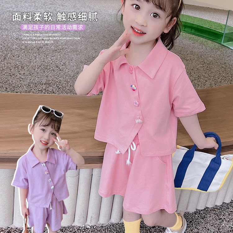여아 세트 2023 여름 신상 여아 반팔 상의 + 반바지 투피스 세트 크로스보더 헤어스토어 가기