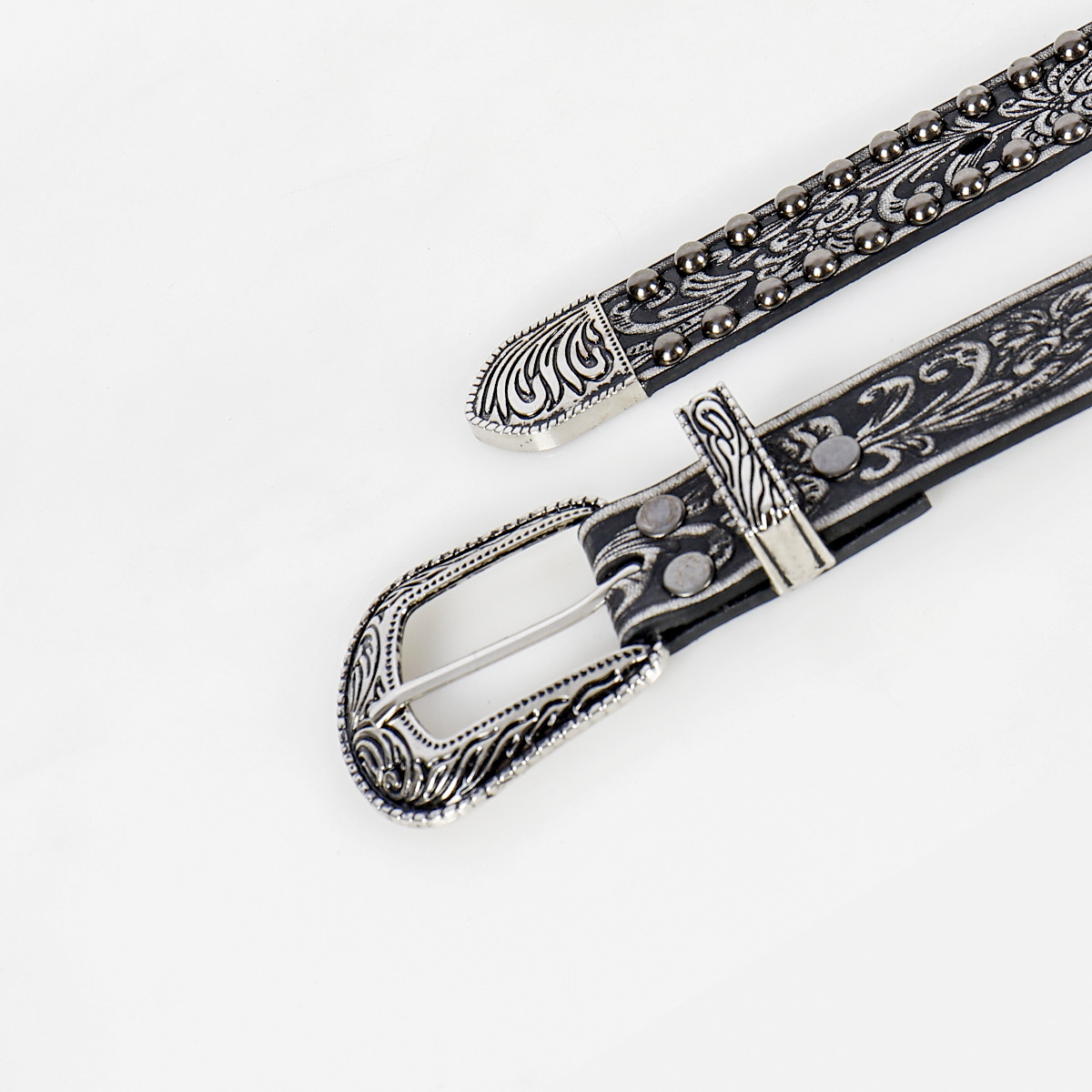 새로운 여성의 빈티지 디스트레스드 스레드 리벳 양각 블랙 벨트 여성의 개인화 된 빈티지 핀 버클 벨트 여성