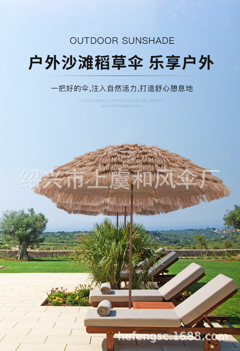 밀짚 우산 야외 파라솔 경치 캠핑 해변 우산 테라스 가든 미들 기둥 시뮬레이션 초 코트야드 태양 우산스토어 가기