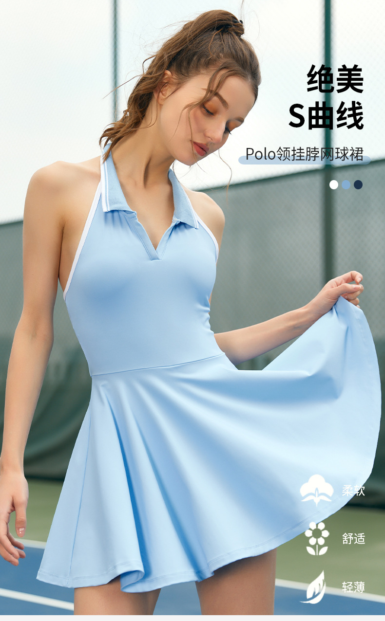 폴로 칼라 홀터넥 테니스 드레스 야외 스포츠 노출 방지 섹시한 백리스 가슴 패드 포함 요가 원피스 여성용