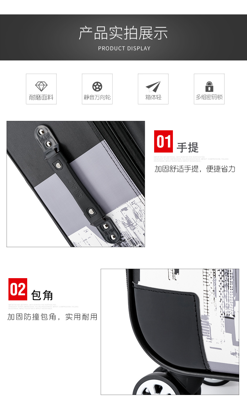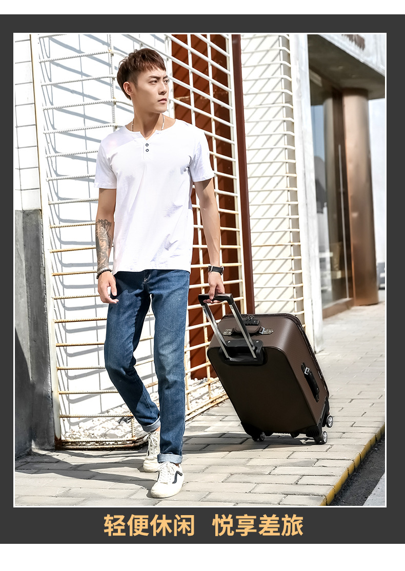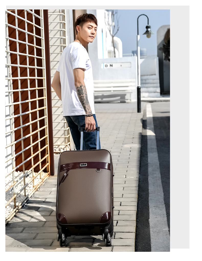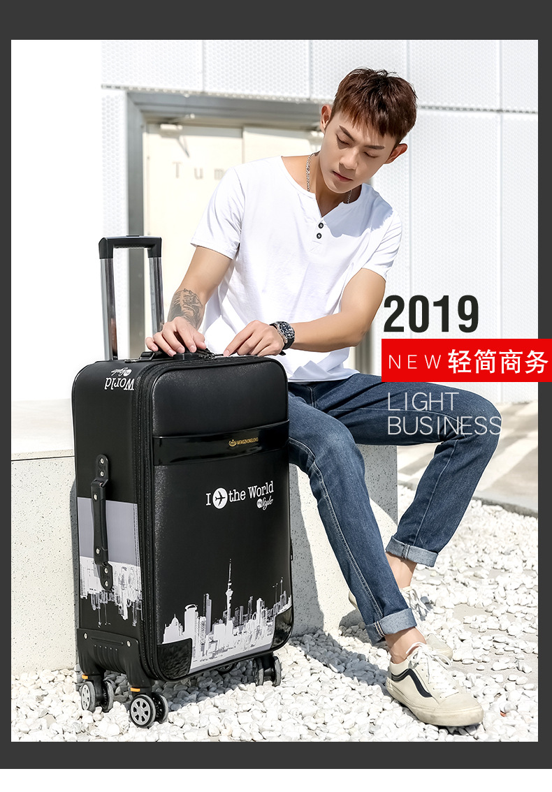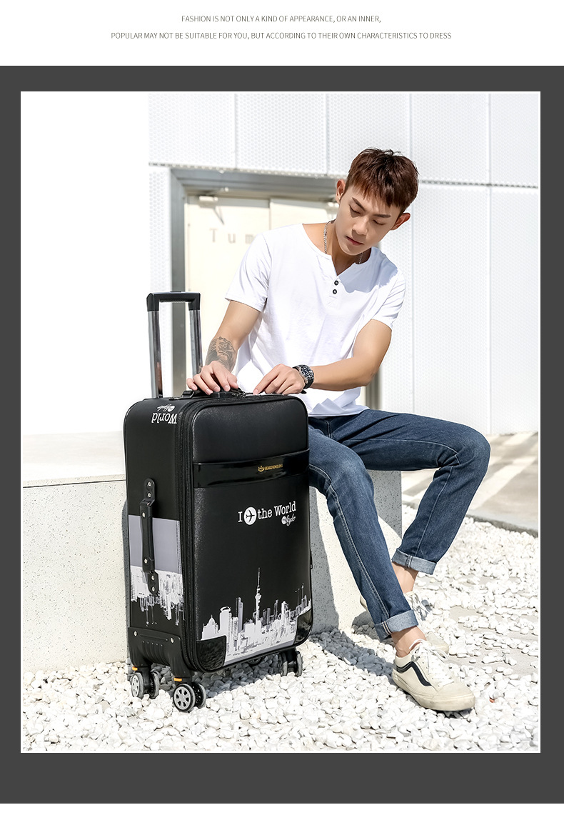 한국 스타일 수하물 개인화 된 트렌디 한 남성용 트롤리 케이스 유니버설 휠 비밀번호 여행 가방 학생 가죽 케이스 24 인치 28 인치