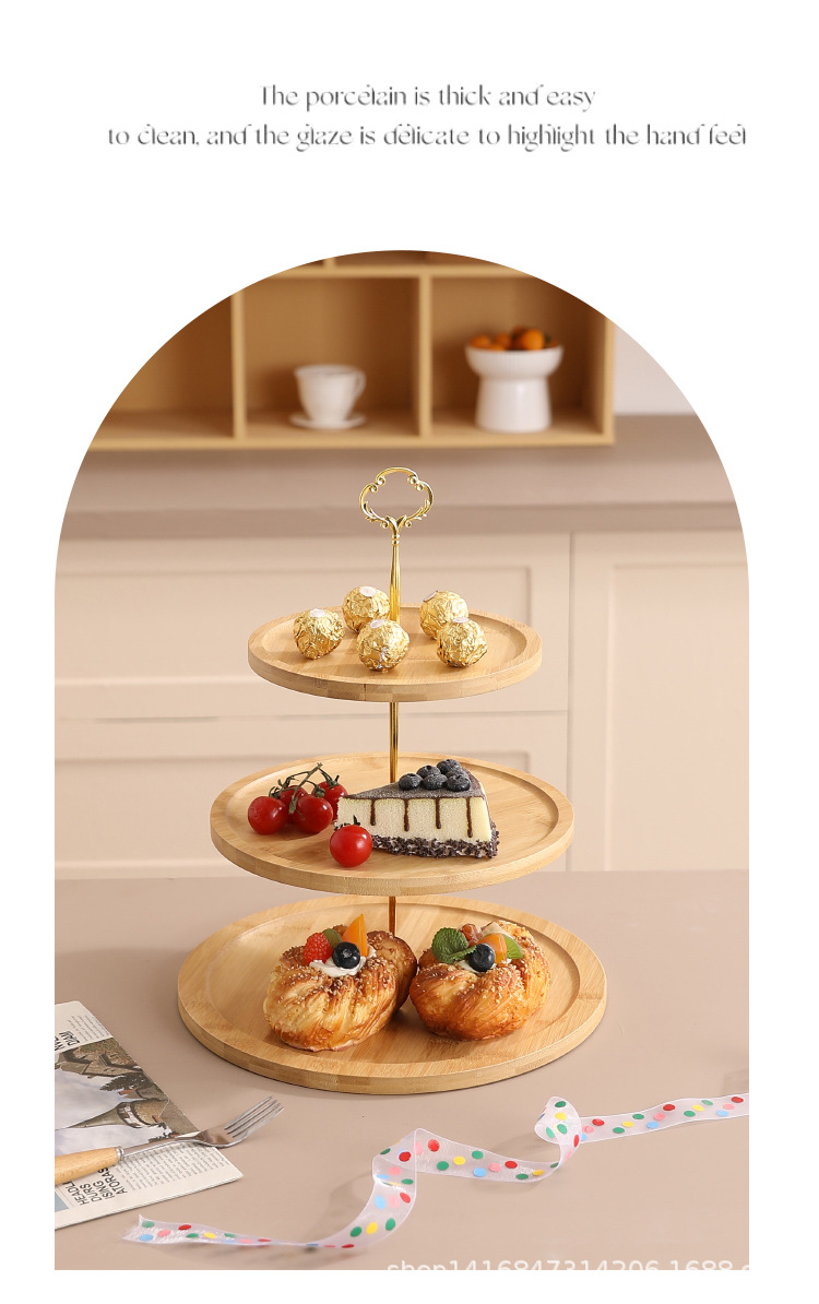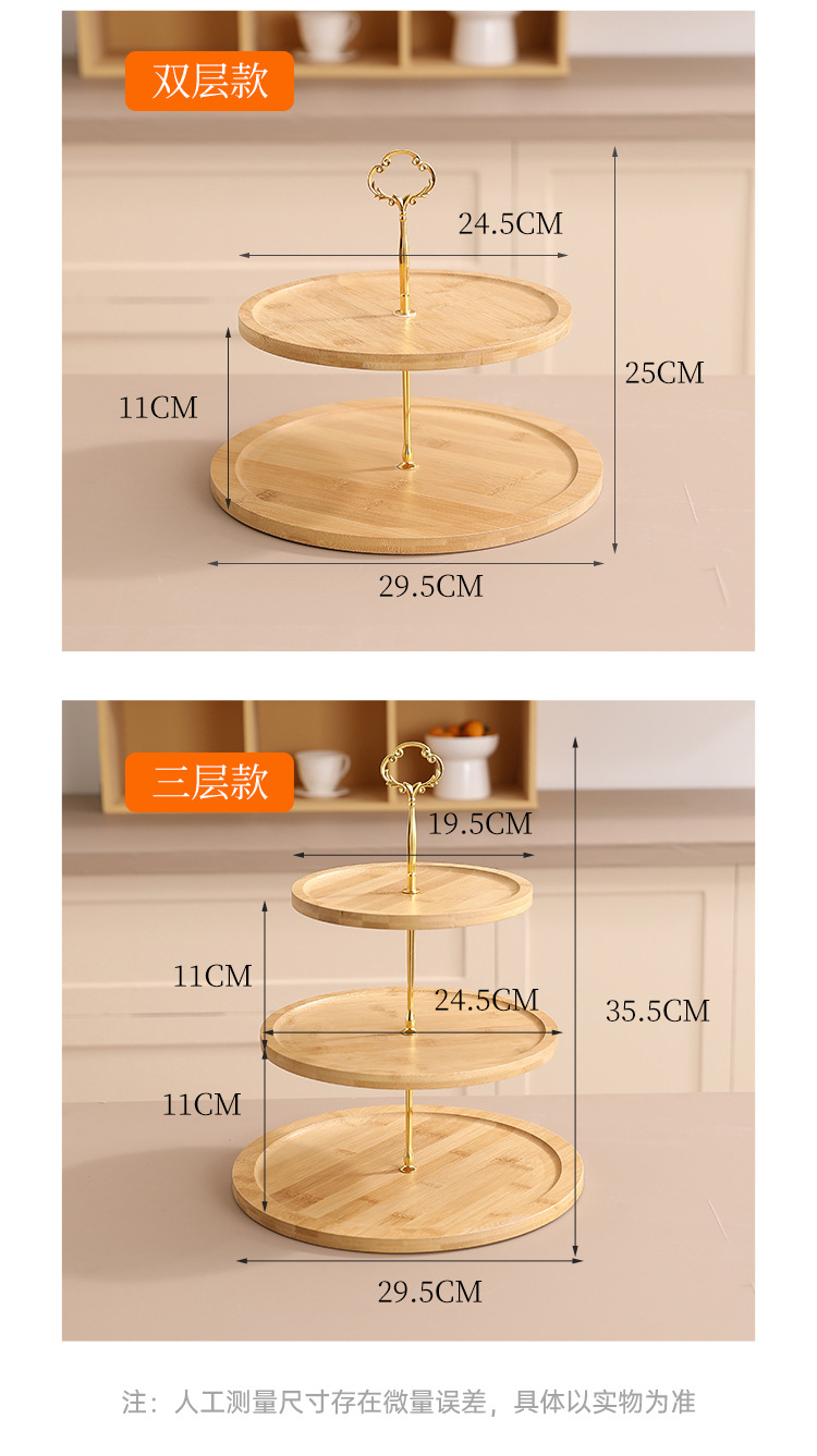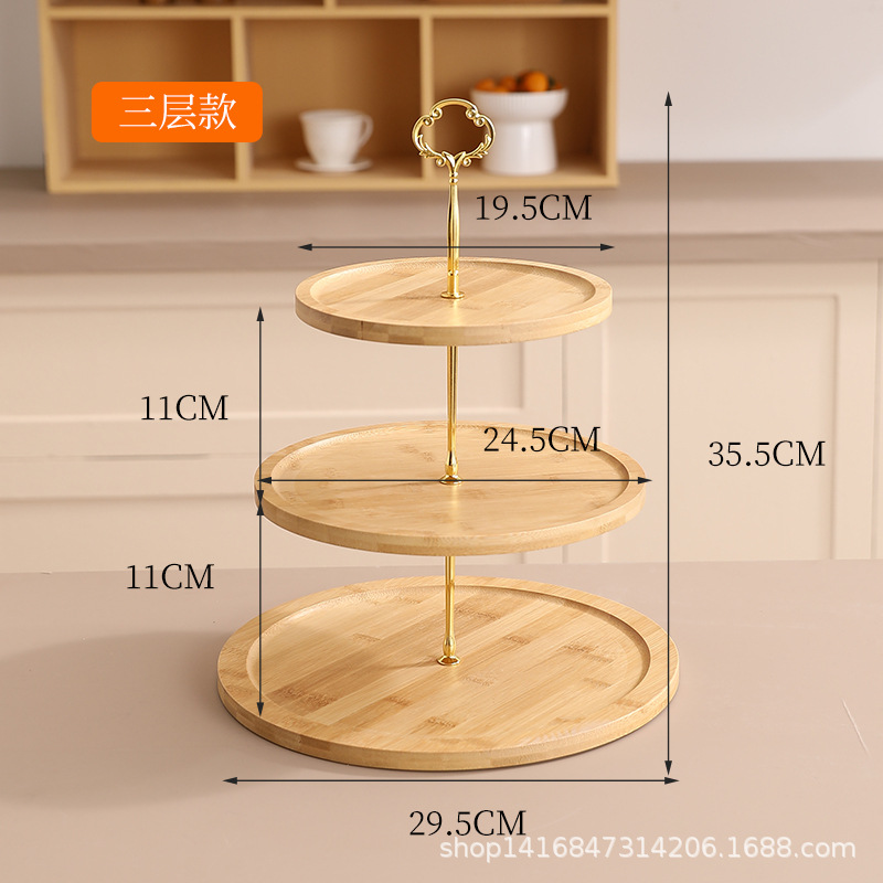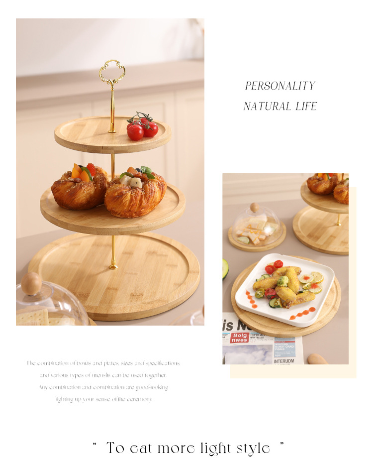 대나무 다층 스낵 트레이 스낵 과일 케이크 트레이 홈 실용 방진 투명 커버 디저트 트레이 목재 제품스토어 가기