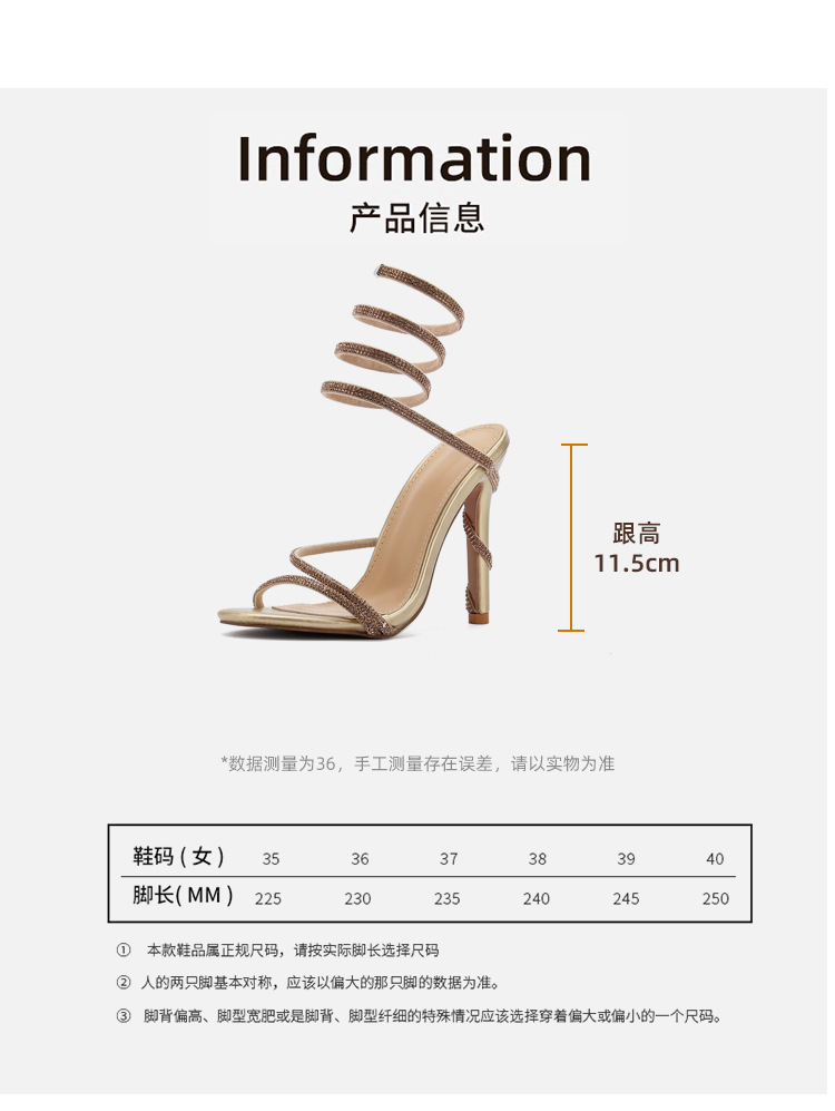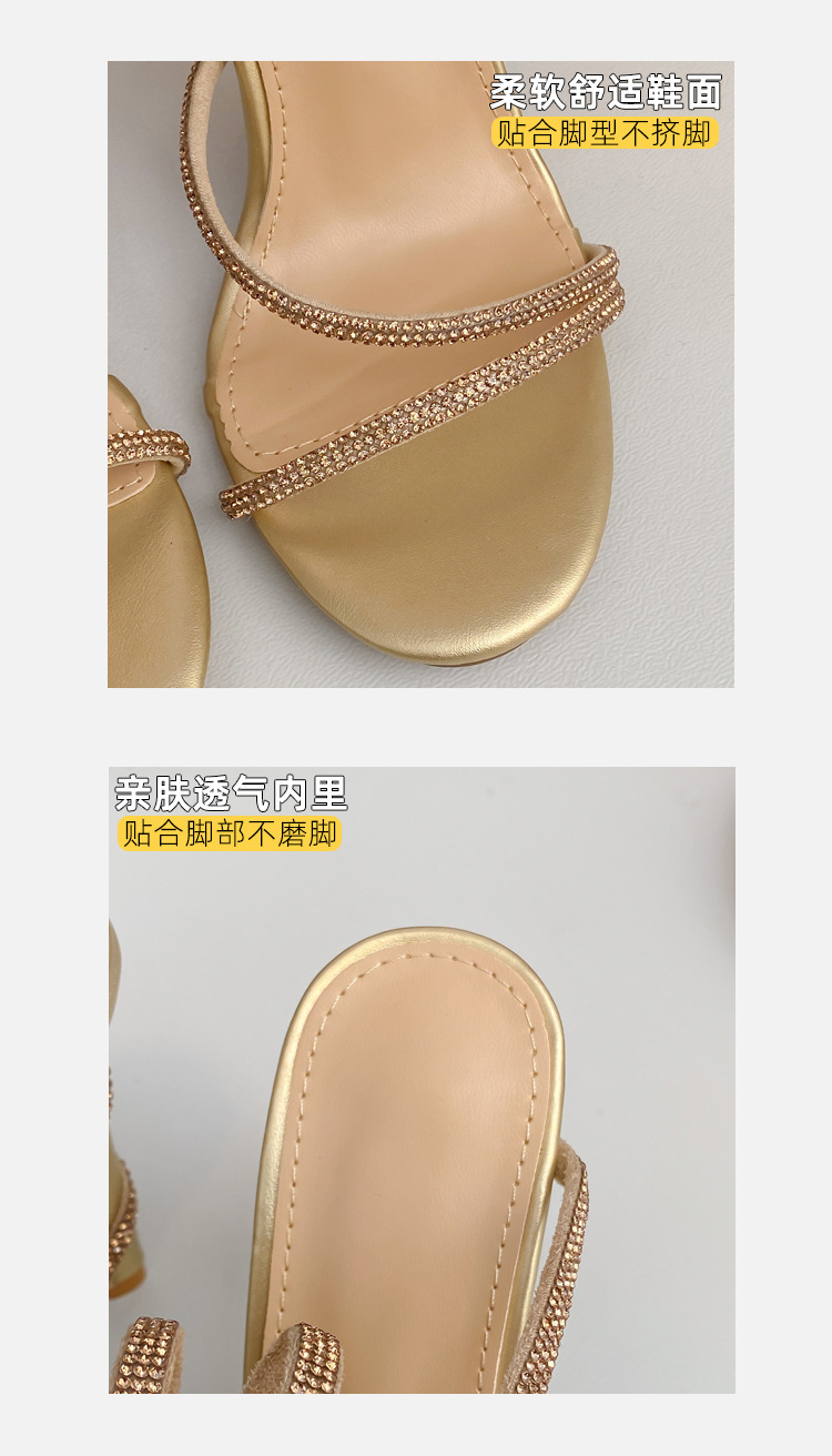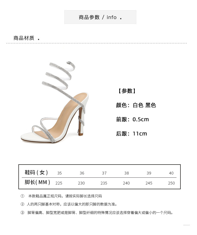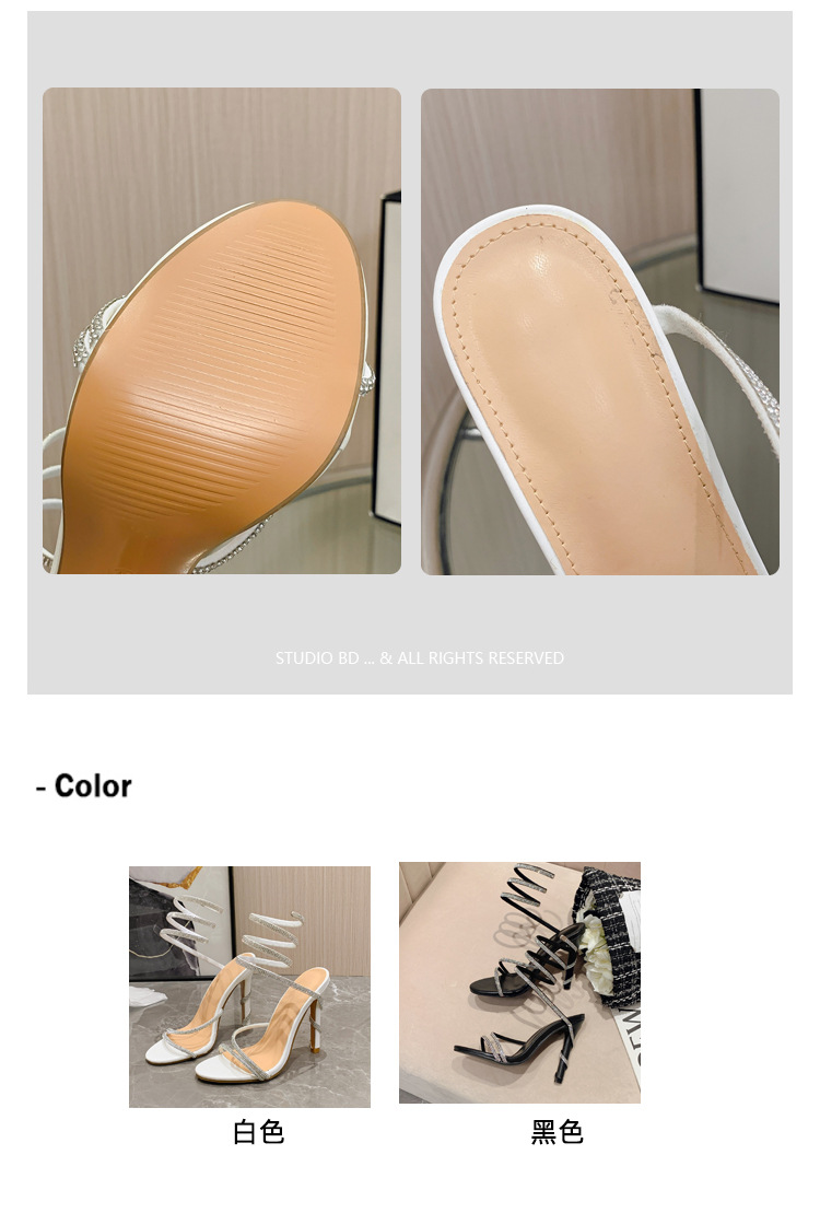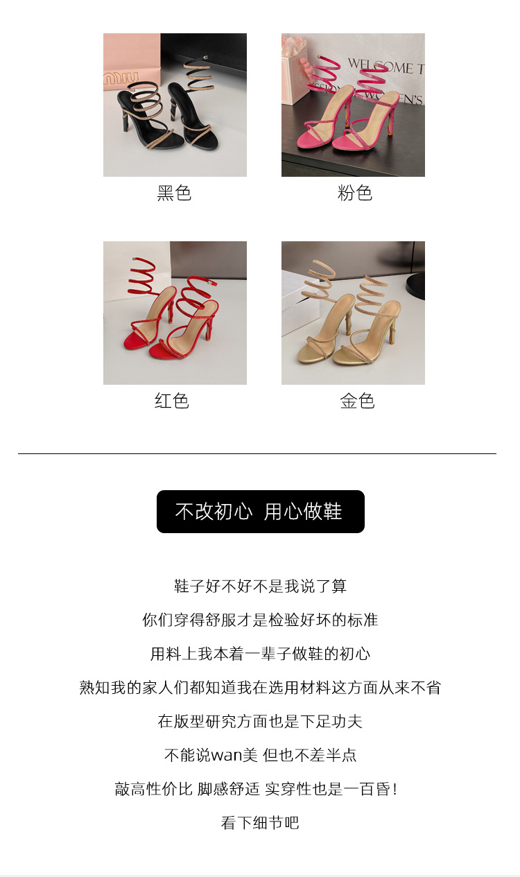2023 새로운 여름 뱀 모양의 모조 다이아몬드 하이힐 사이버 연예인 요정 바람에 싸인 얇은 굽 샌들 여성 도매 대외 무역스토어 가기