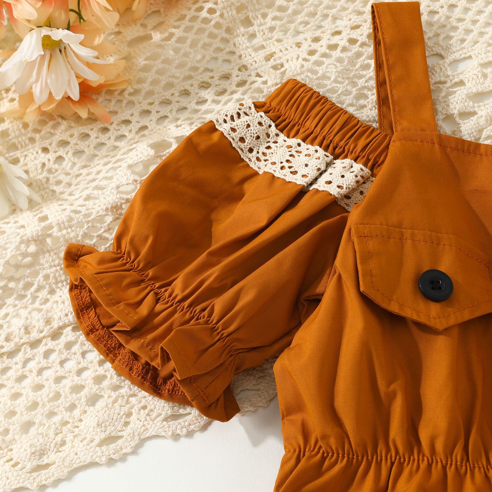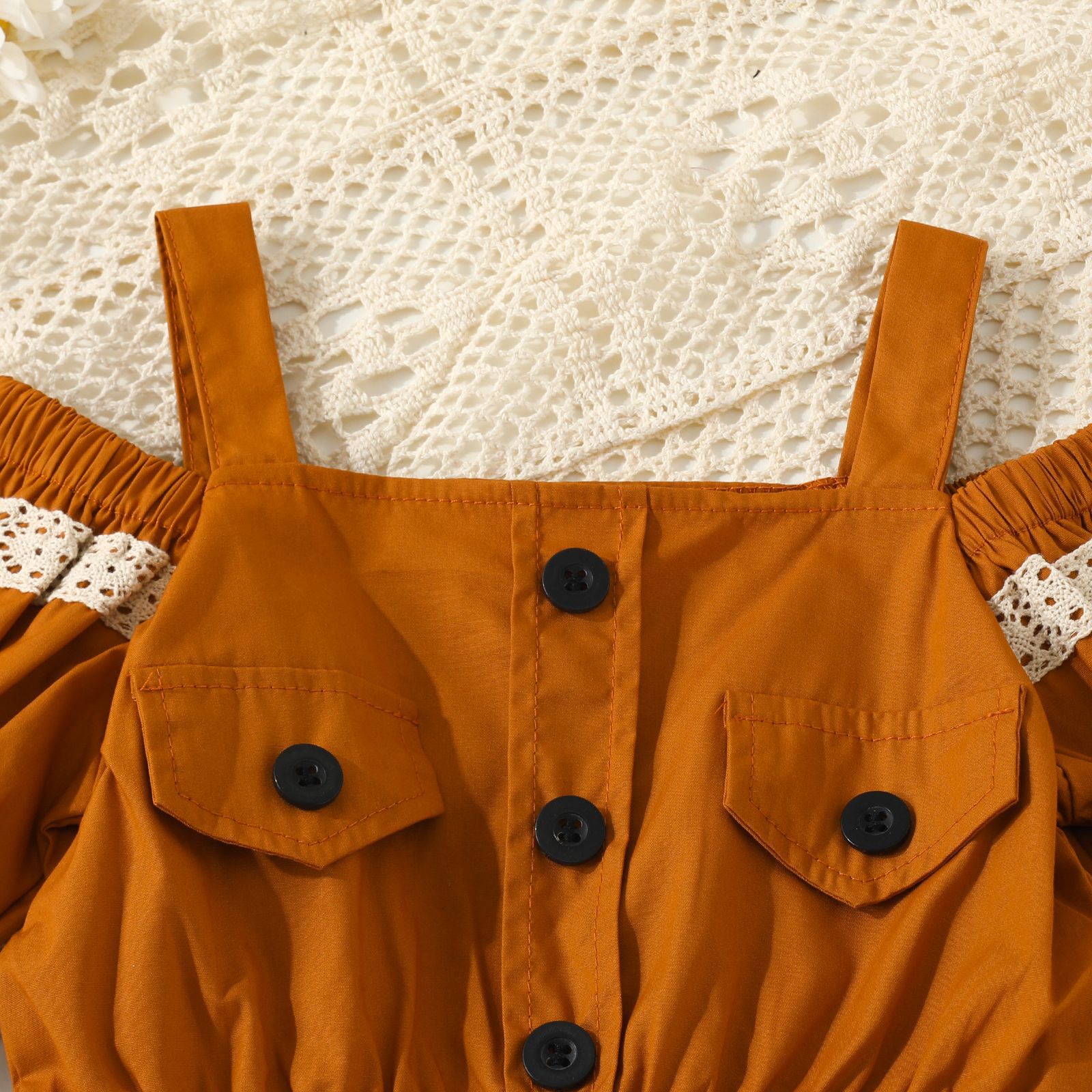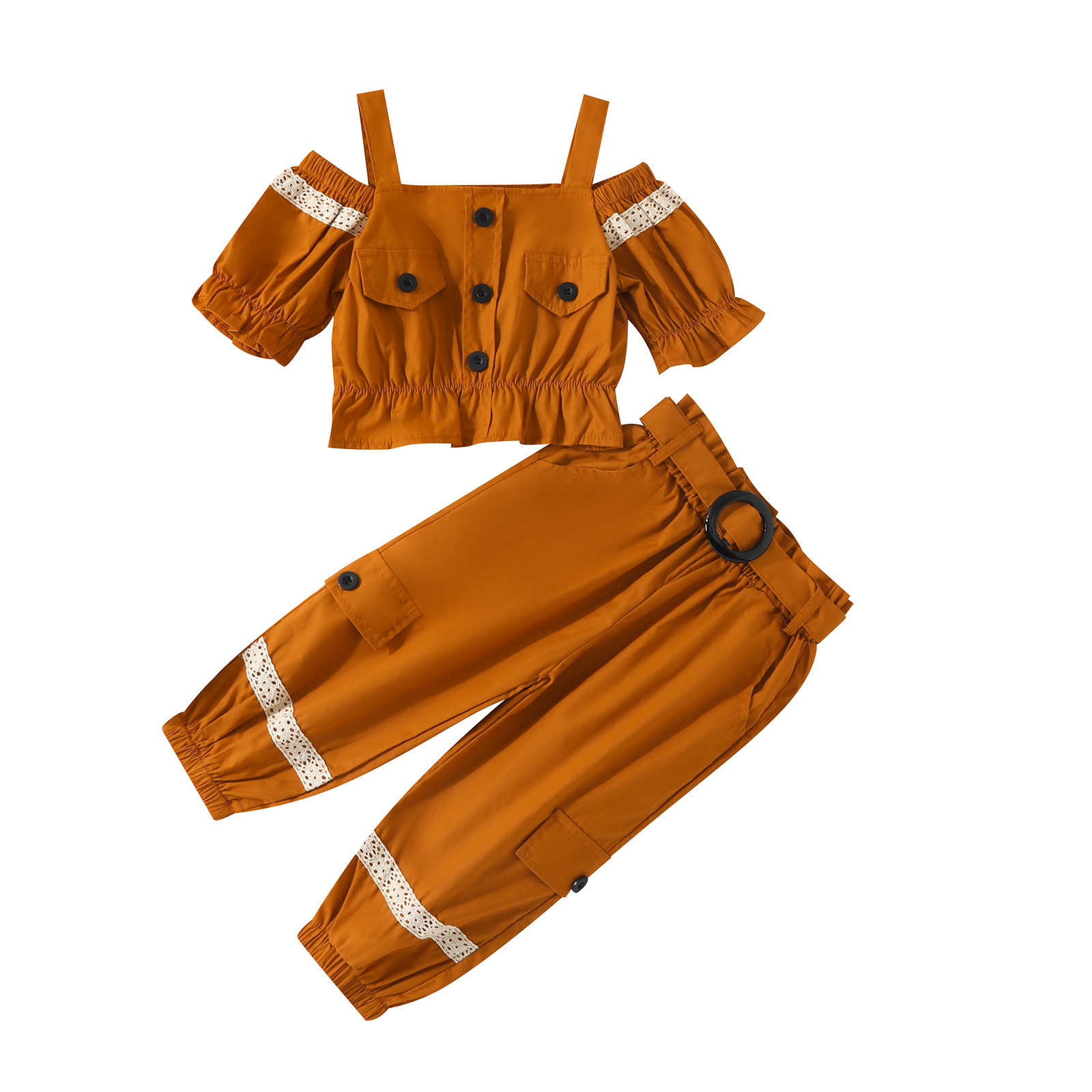 유럽과 미국의 국경 간 걸스 여름 슬링 레이스 오프 숄더 반팔 고무 커프 싱글 브레스트 최고 연장 바지
