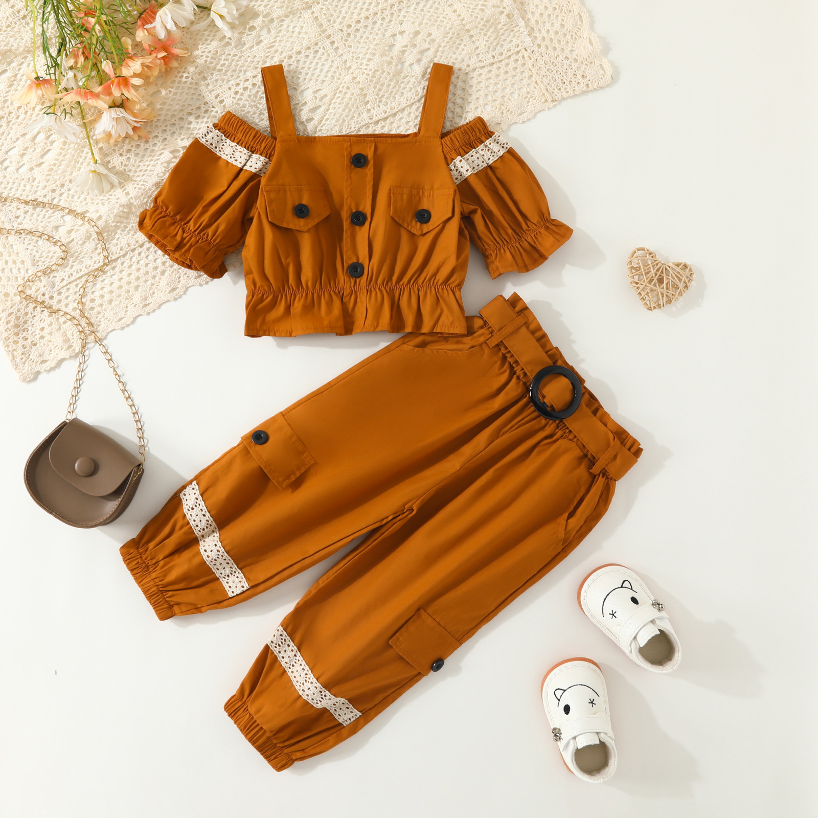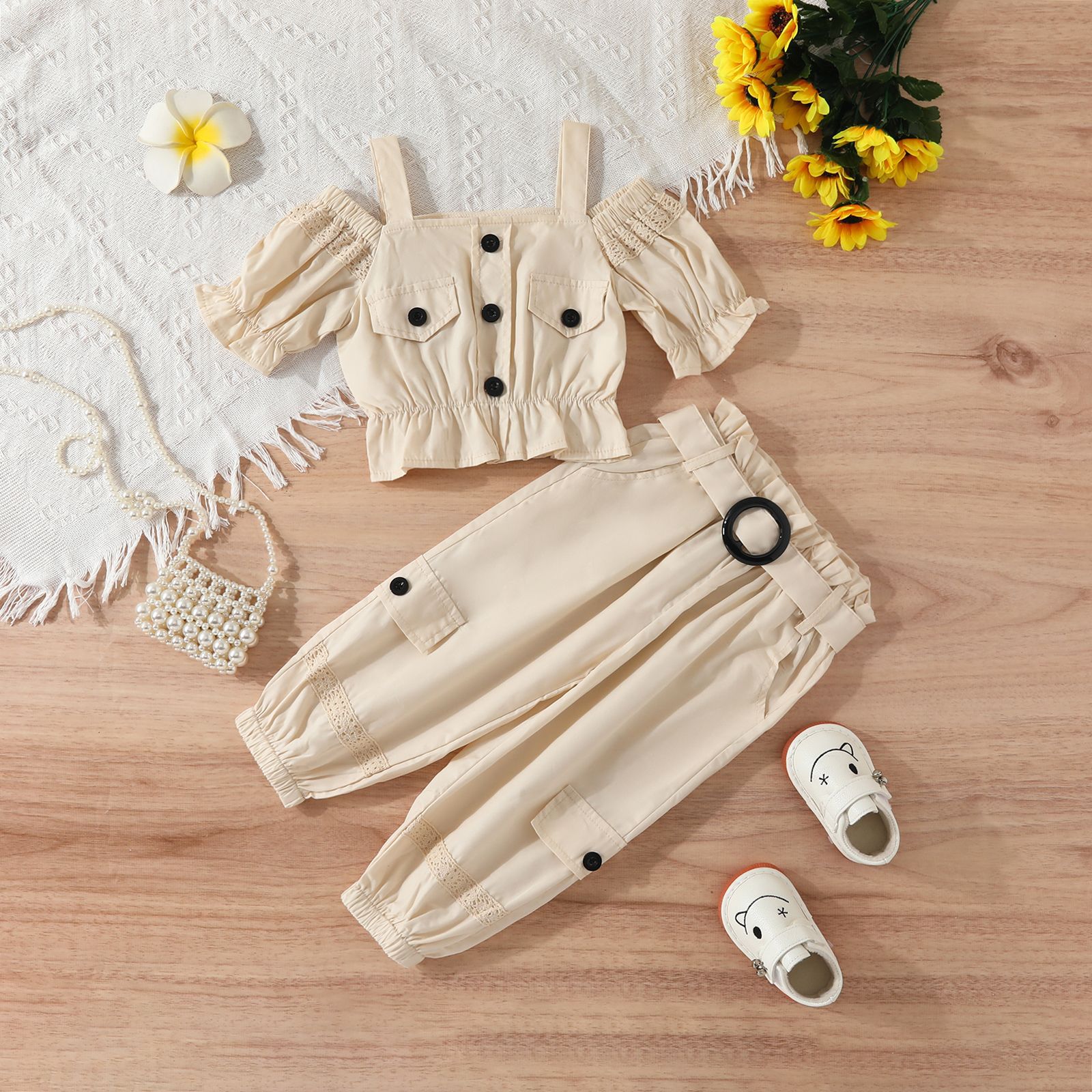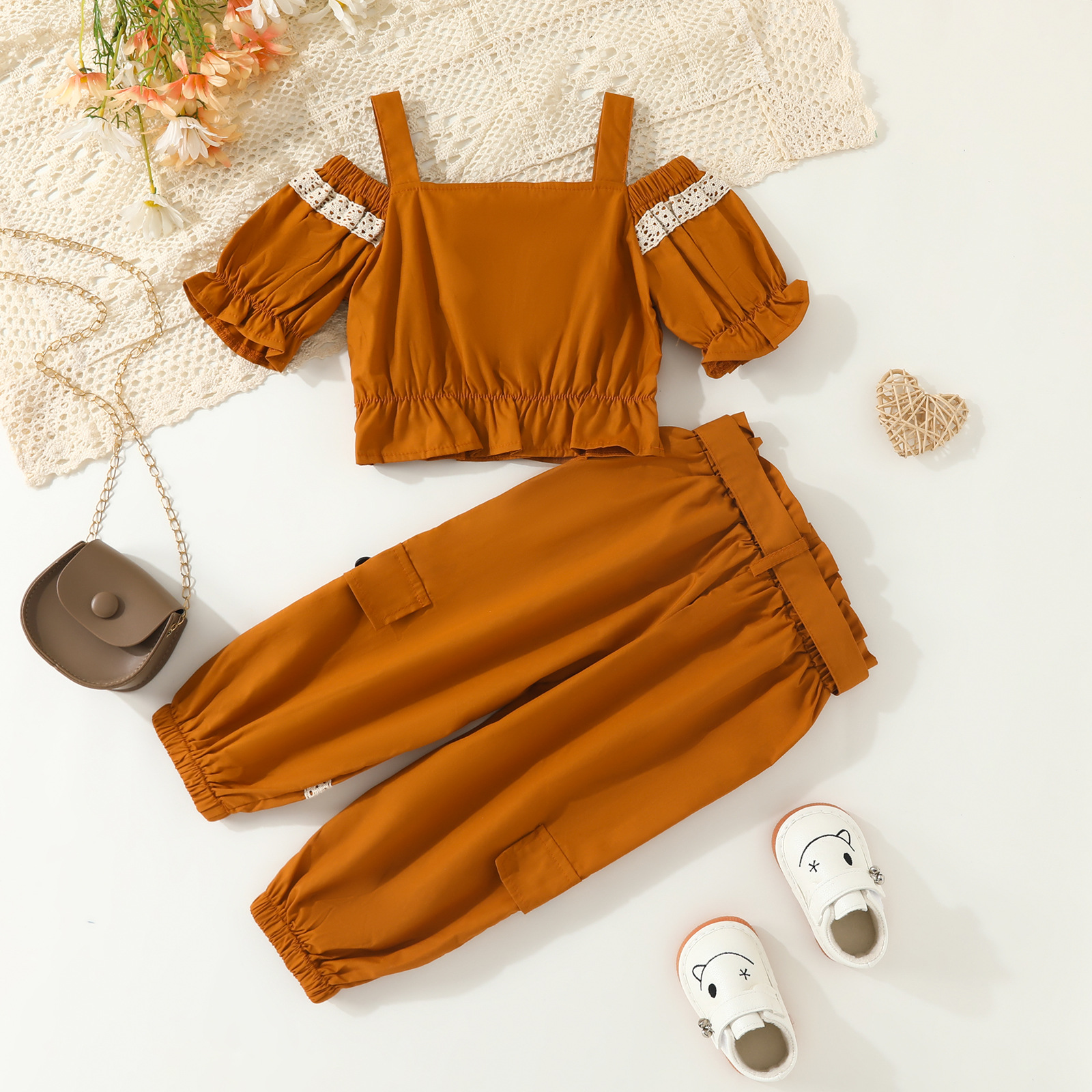유럽과 미국의 국경 간 걸스 여름 슬링 레이스 오프 숄더 반팔 고무 커프 싱글 브레스트 최고 연장 바지