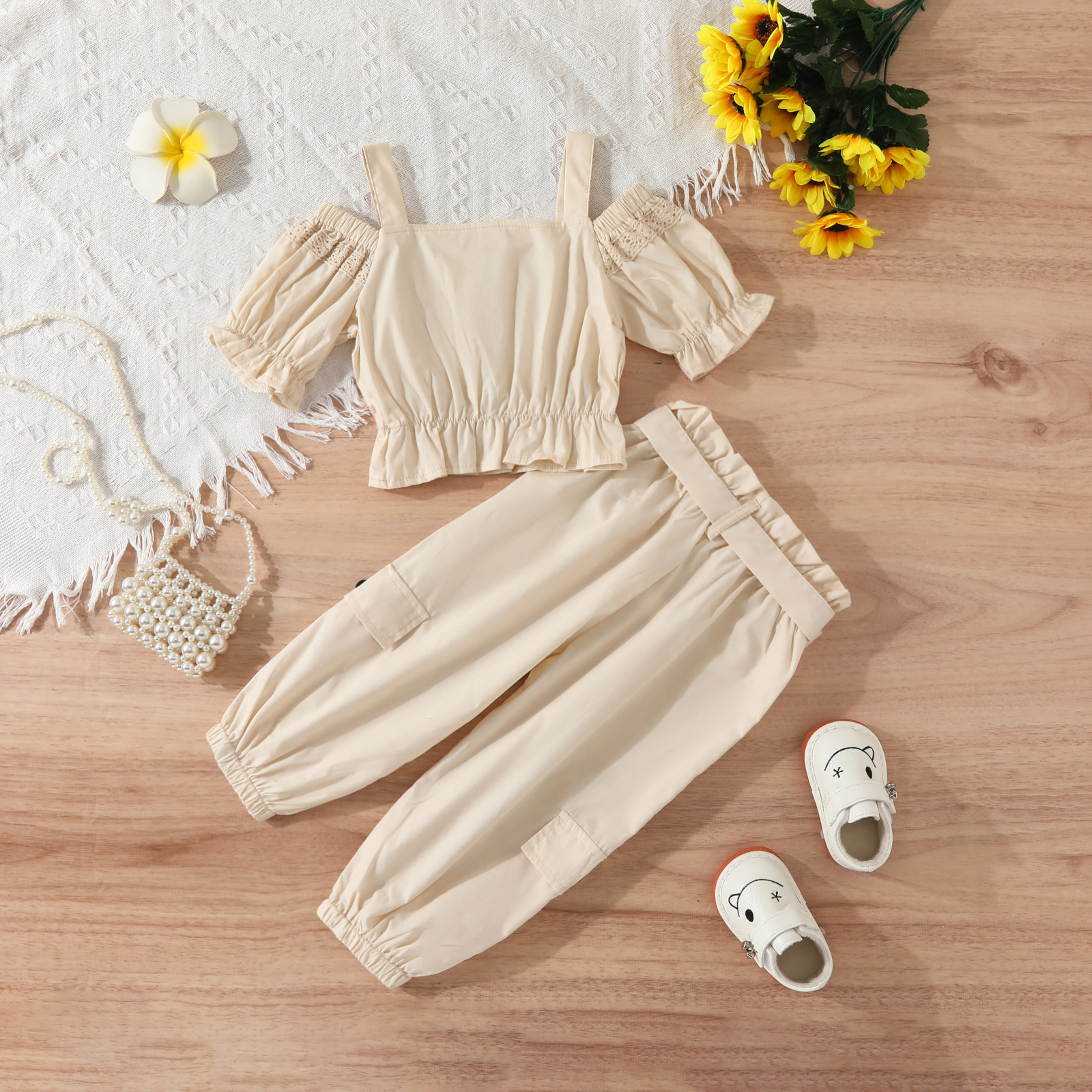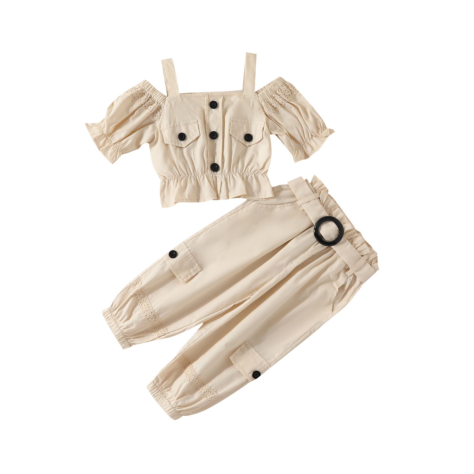 유럽과 미국의 국경 간 걸스 여름 슬링 레이스 오프 숄더 반팔 고무 커프 싱글 브레스트 최고 연장 바지스토어 가기