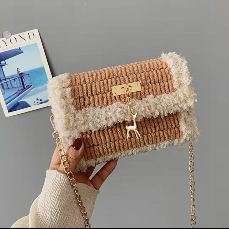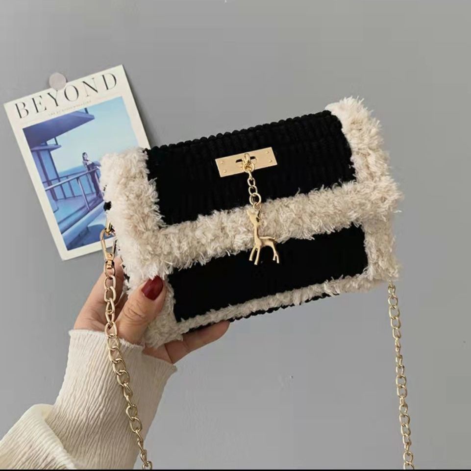 TikTok 새로운 선물 여자 친구 Yugui 개 소재 가방 봉제 크로스 바디 백을 위한 수제 DIY 수제 짠 가방