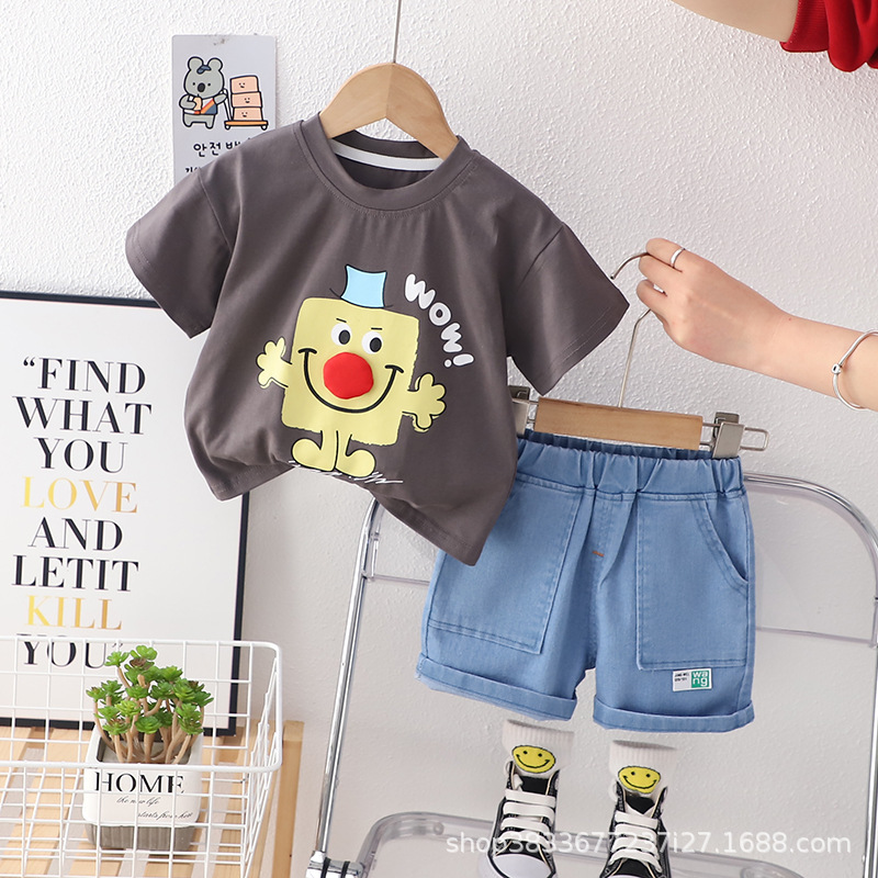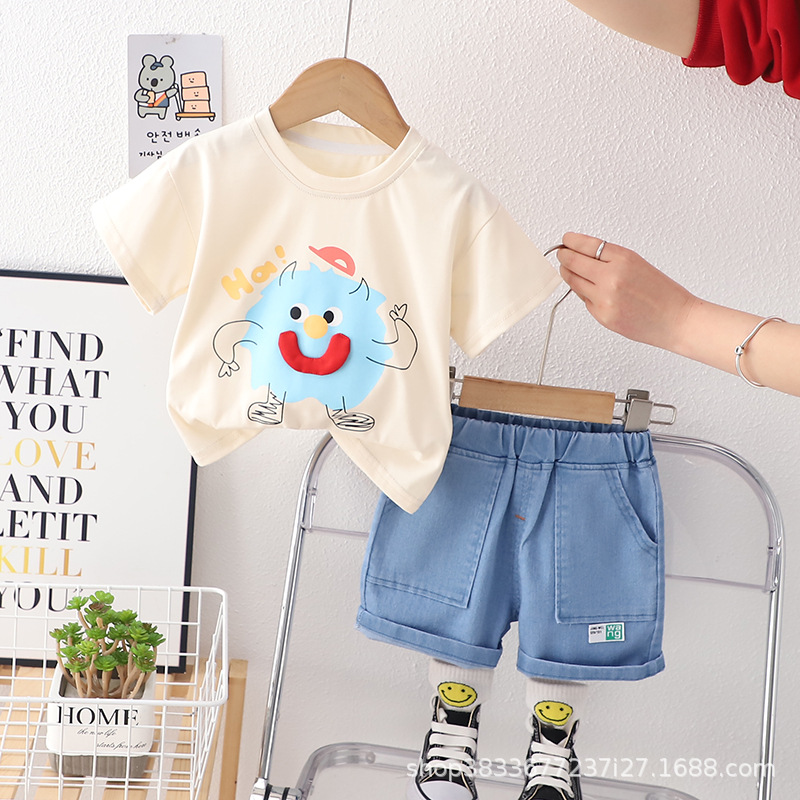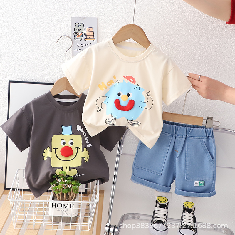 소년 여름 옷 서양식 아동 옷 여름 아동 옷 아기 소년 소녀 동물 반팔 세트 하나 도매