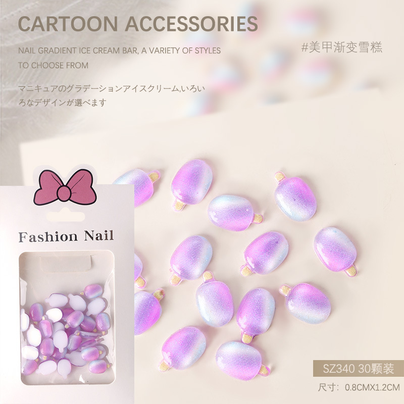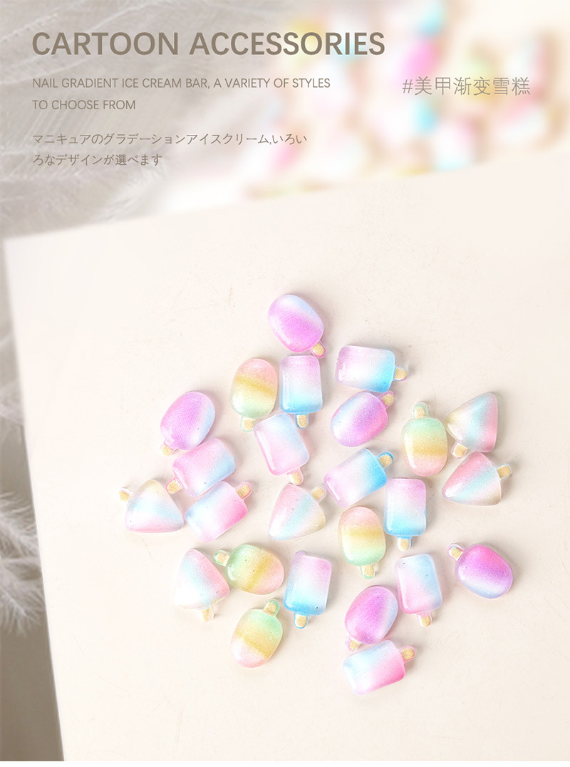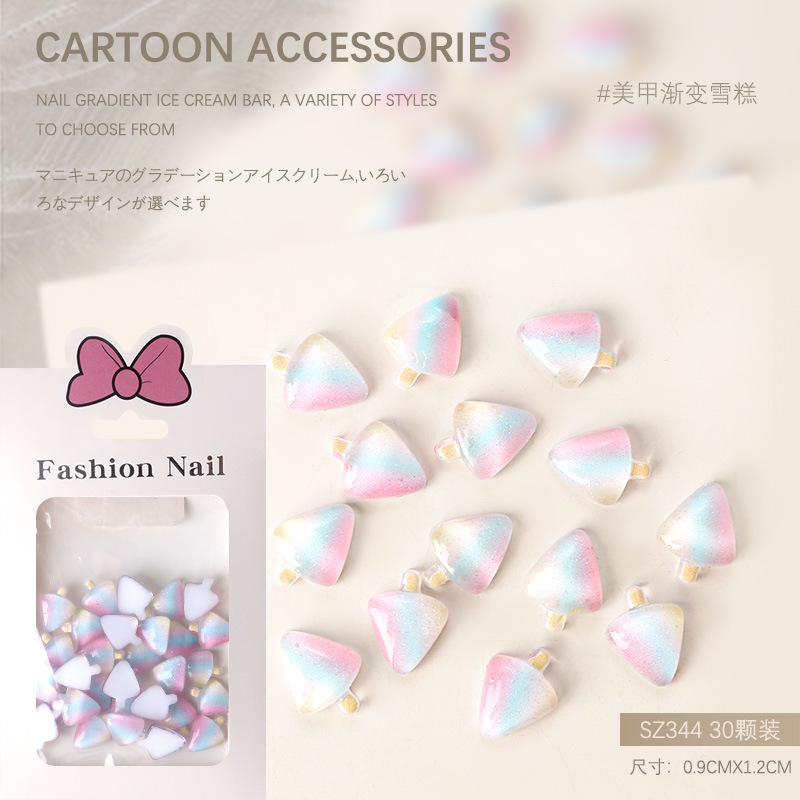 30 네일 쥬얼리 여름 상쾌한 아이스크림 네일 쥬얼리 간단한 입체 색상 그라디언트 일본 네일 장식