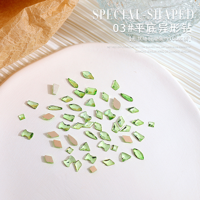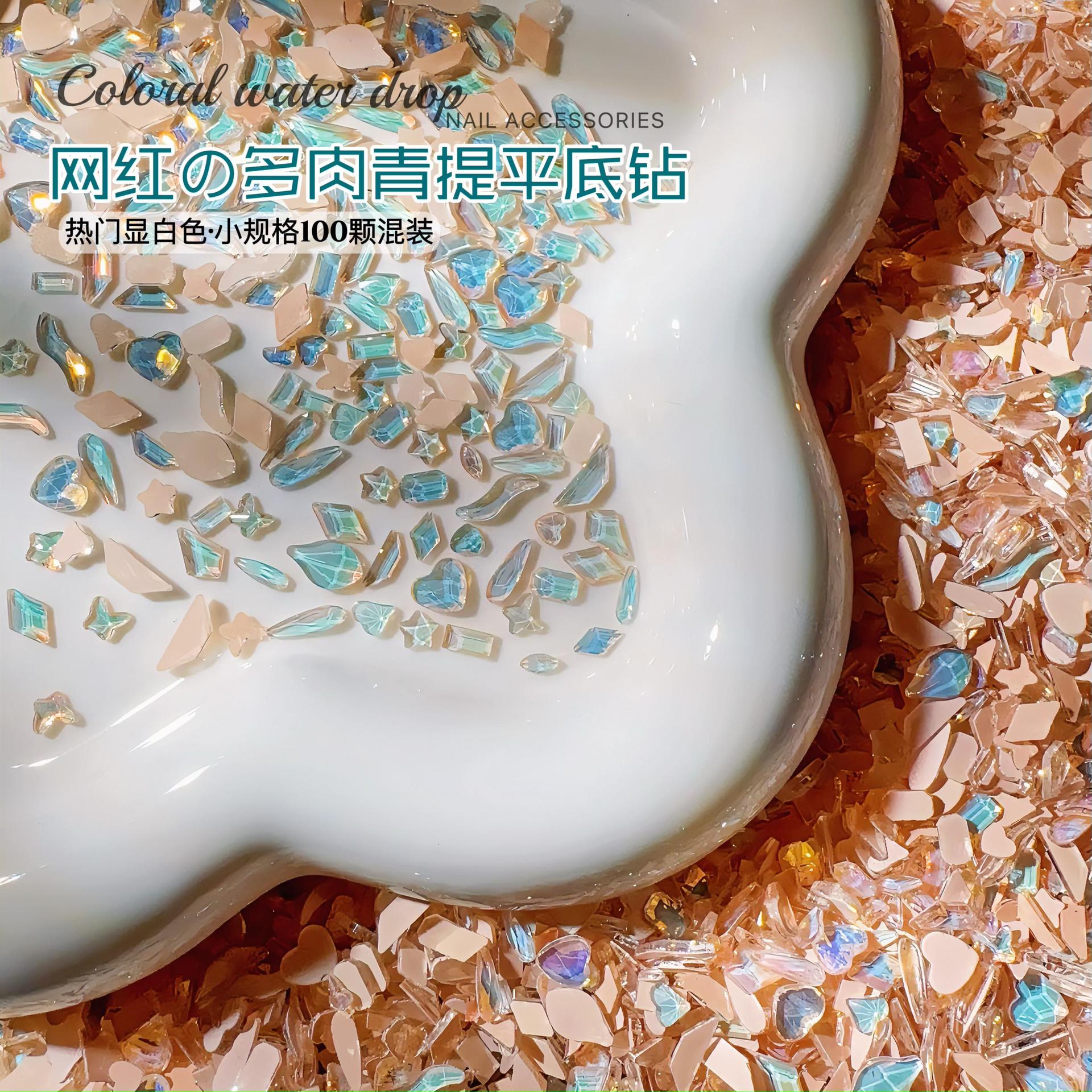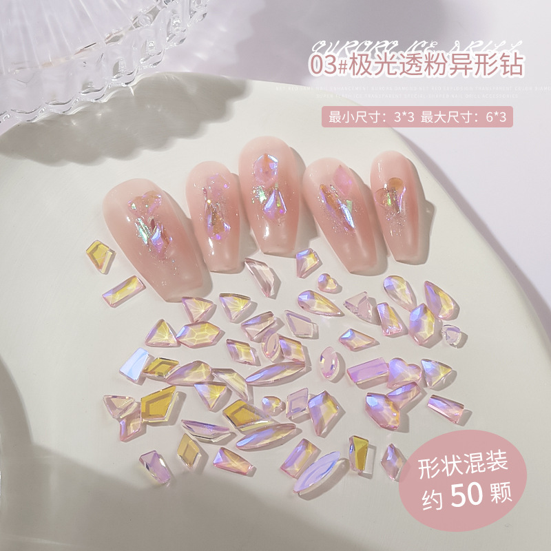 네일 아트 평평한 바닥 특수 모양의 드릴 따뜻한 정신과 오로라 슈퍼 플래시 유리 드릴 핑크 호수 블루 네일 장식