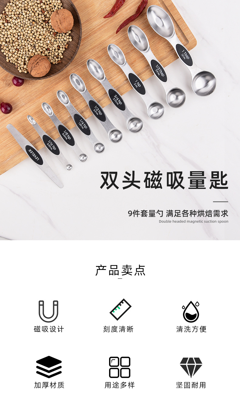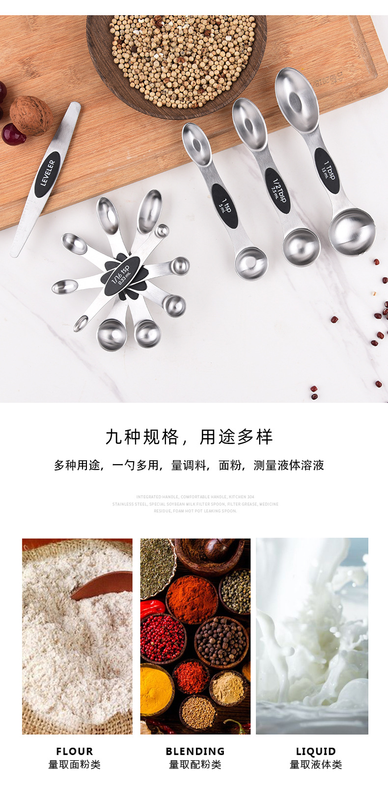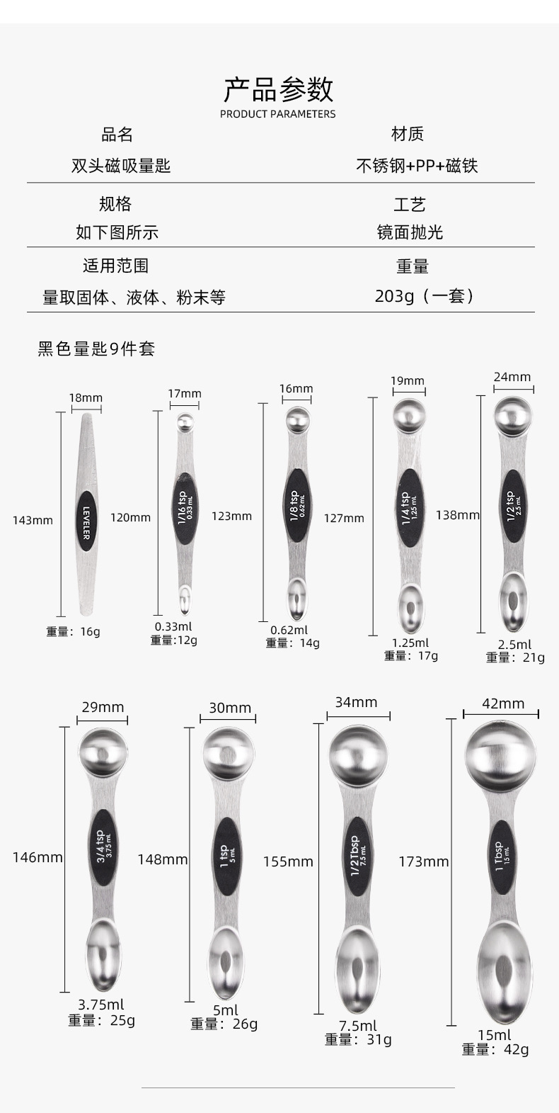 • 430 블랙 더블 헤드 자기 측정 스푼 9 장 세트