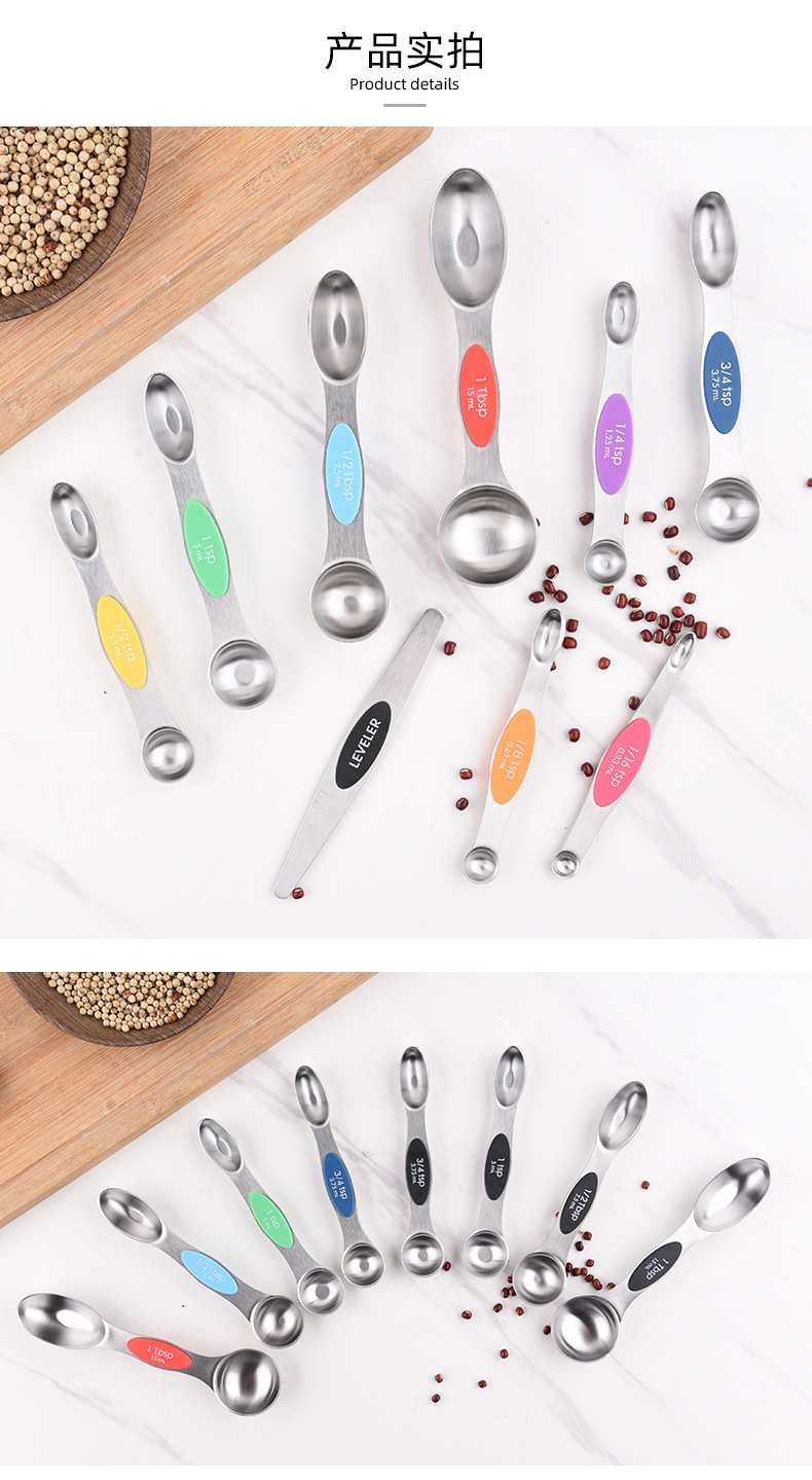 • 304-컬러 더블 헤드 자기 인력 스푼 세트 9