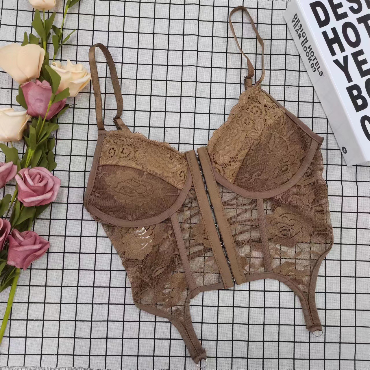 스파이스 걸 물고기 뼈 레이스 캐미솔 여자의 여름 핑크 겉옷 섹시한 등이없는 디자인 감각 내부 밴드 가슴 패드스토어 가기