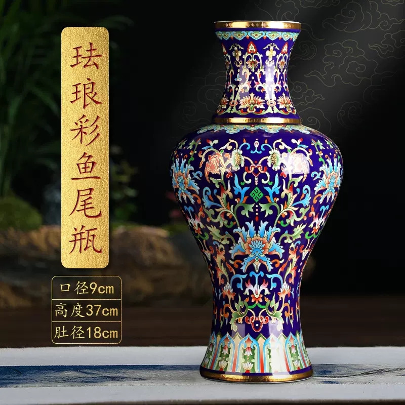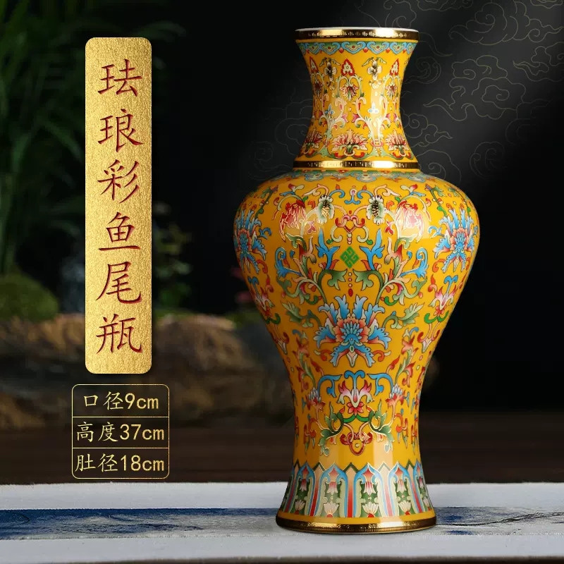 • 임페리얼 옐로우 칠보 에나멜 물고기 꼬리 병
