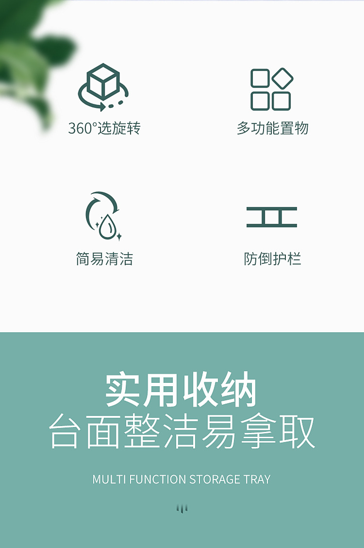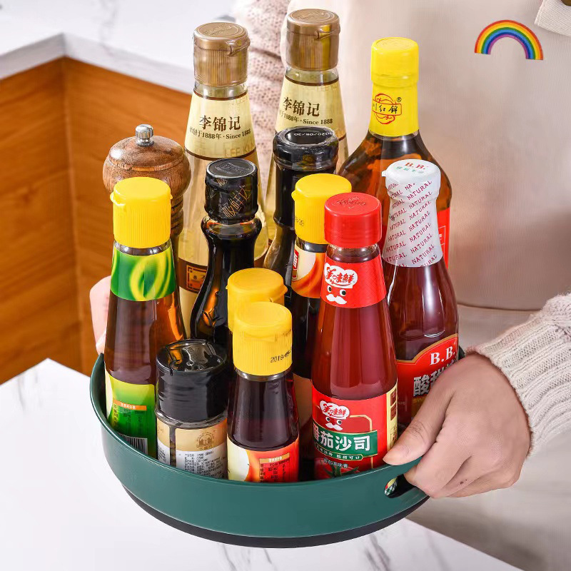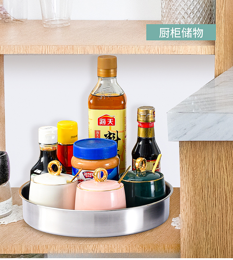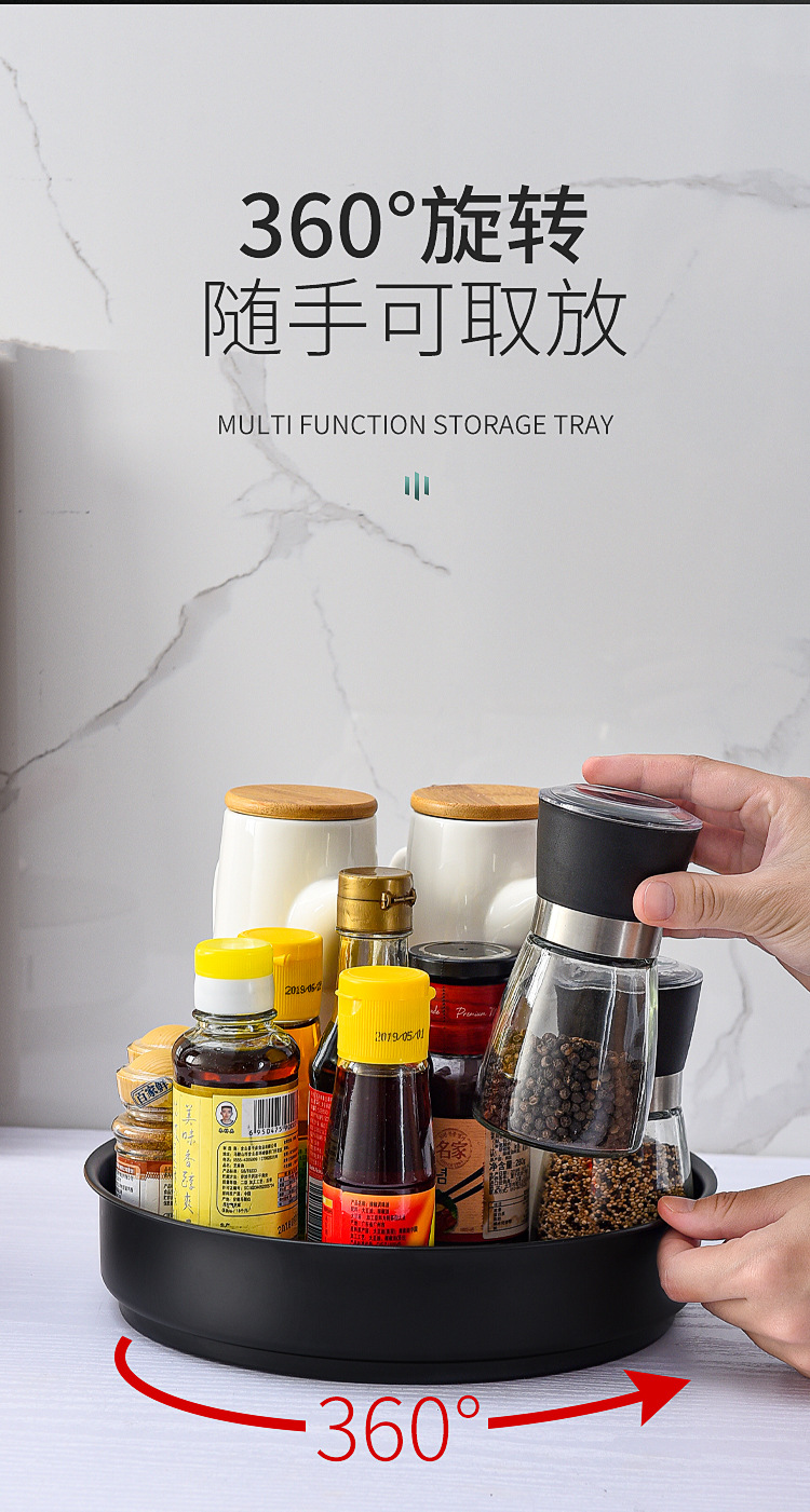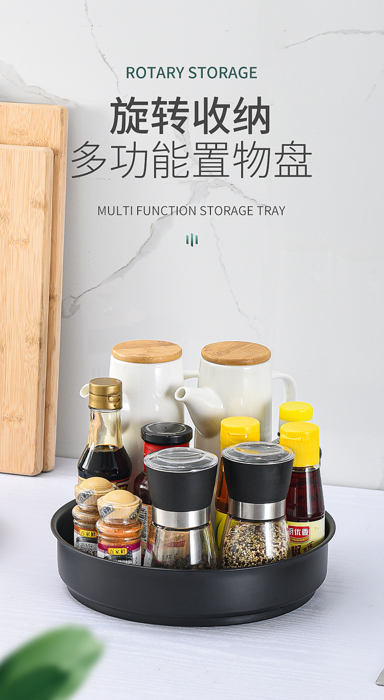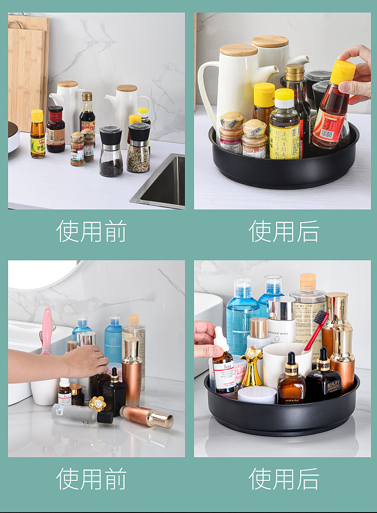 可旋转的置物架,可放调料瓶,化妆品,收纳杂物。