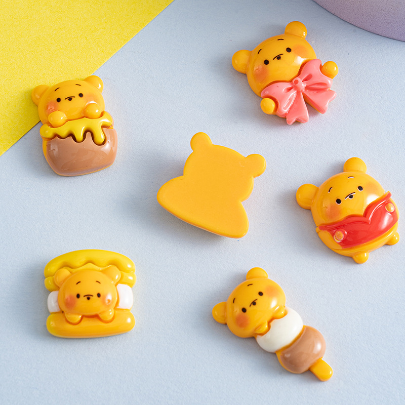 노란색 광택 만화 곰 햄버거 음식과 놀이 DIY 수지 액세서리 보석 크림 접착제 머리핀 머리 장식 전화 케이스스토어 가기