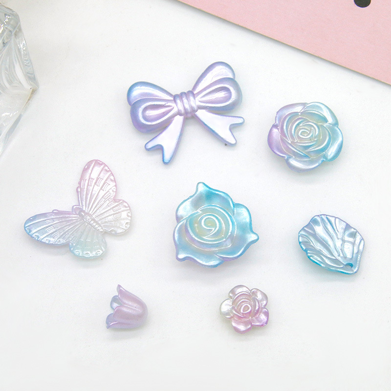 DIY 보석 장미 나비 혼합 꽃 매직 컬러 그라데이션 비즈 크림 드롭 접착제 휴대 전화 케이스 헤어 카드 페르시