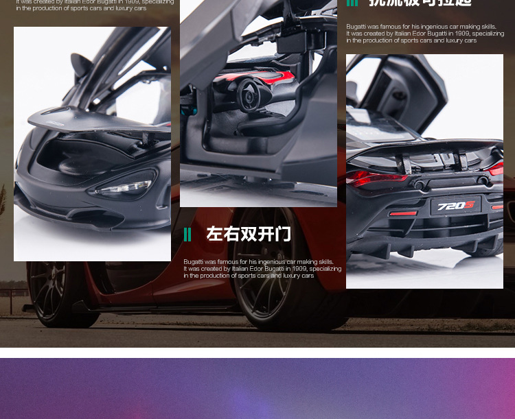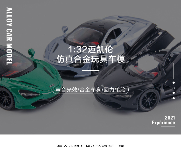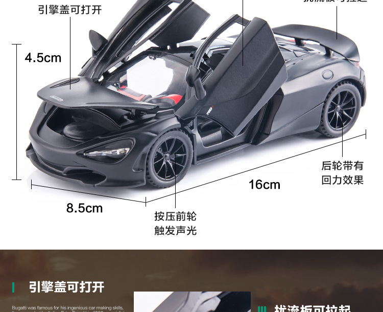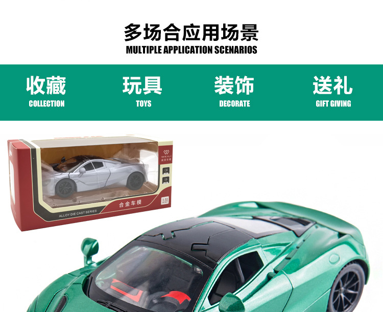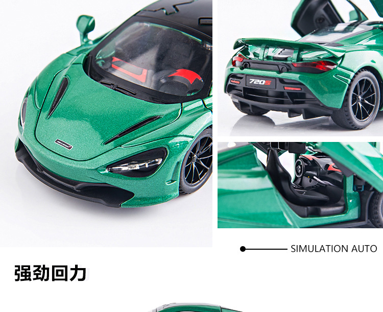 Weili 합금 자동차 모델 1:32 McLaren 720S 럭셔리카 로고 Acousto-optic Huili 장난감 자동차 음악 모델 장식품 컬렉션