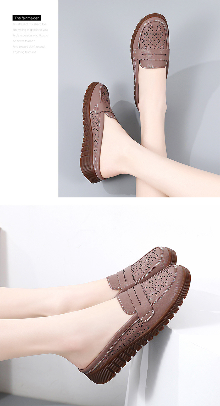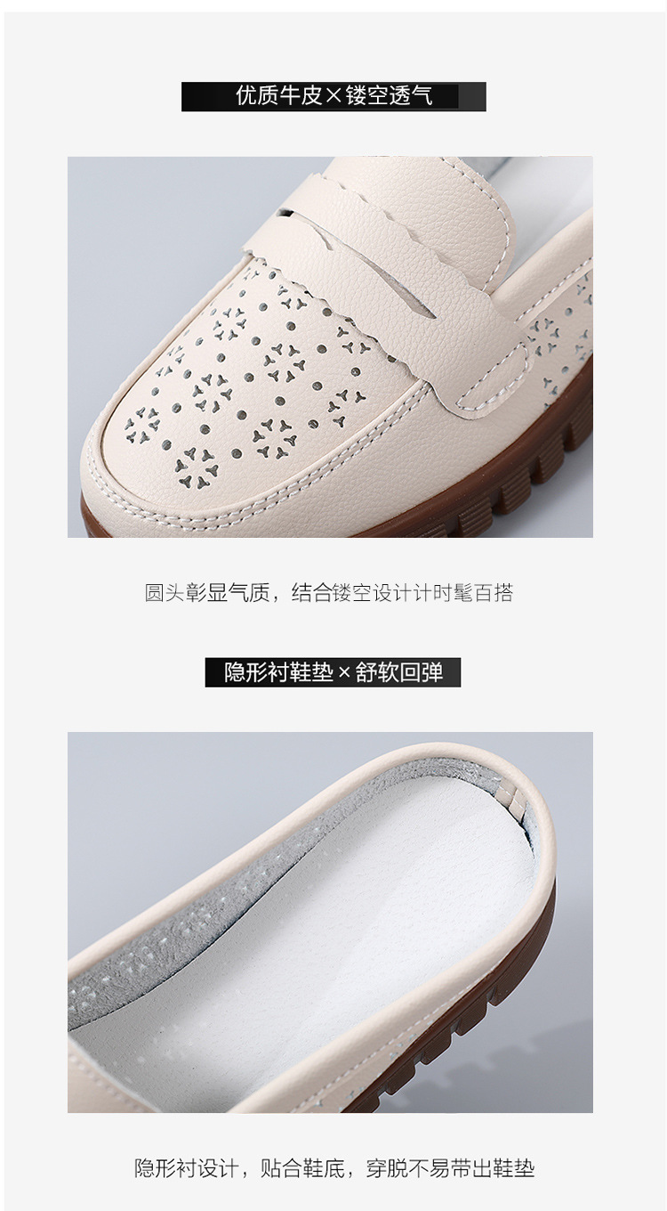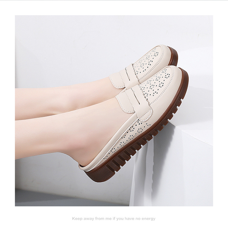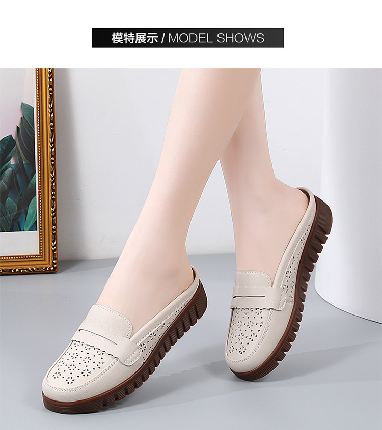 여름 중공 Baotou 슬리퍼 여자의 겉옷 쇠고기 힘줄 플랫 솔 중년 복고풍 엄마 신발 정품 가죽 샌들과 슬리퍼 플러스 사이즈