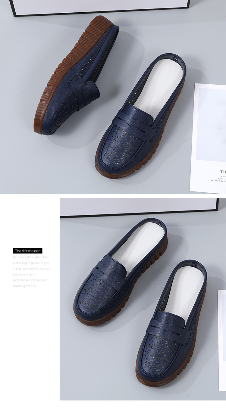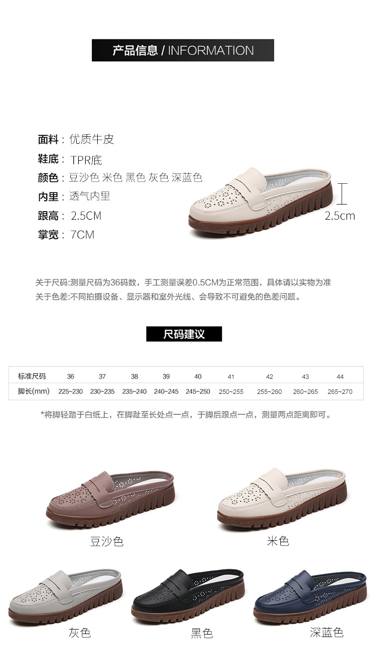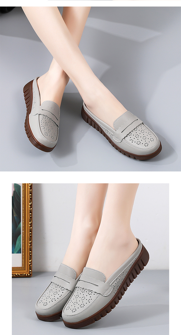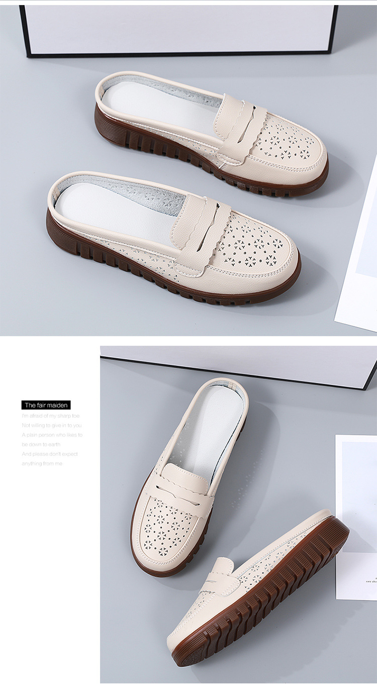 여름 중공 Baotou 슬리퍼 여자의 겉옷 쇠고기 힘줄 플랫 솔 중년 복고풍 엄마 신발 정품 가죽 샌들과 슬리퍼 플러스 사이즈