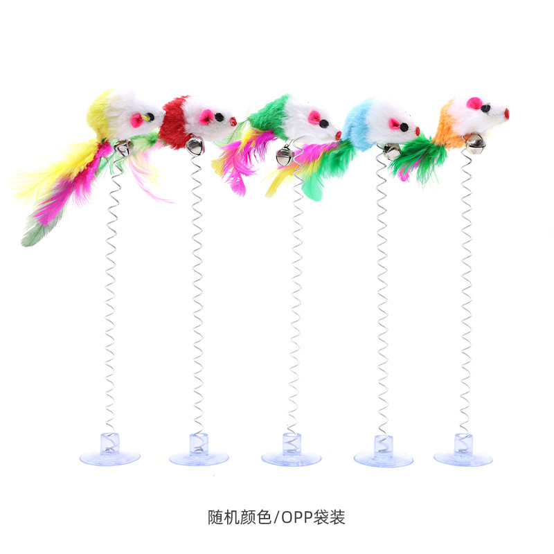 제조 업체 도매 고양이 장난감 흡입 컵 봄 마우스 재미 있은 고양이 스틱 흡입 컵 깃털 벨 흡착 장난감 재고 있음