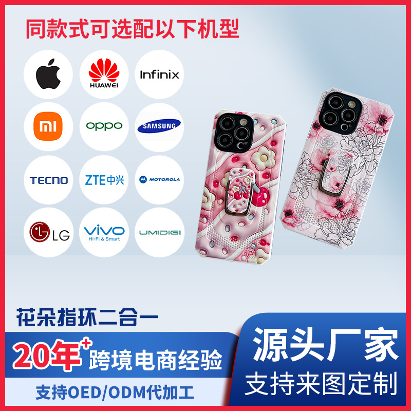 크로스 보더 드롭 방지 U 자형 링 버클 휴대 전화 케이스 애플 회전 자기 흡입 애플 휴대 전화 케이스 귀여운 꽃 휴대 전화 케이스