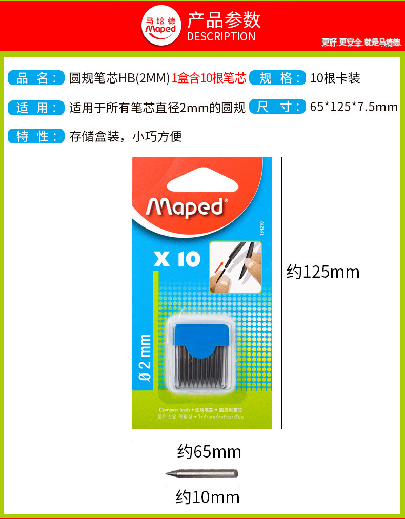 Ma Peide 134210 나침반 특수 리드 나침반 연필 리필 2mm 나침반 교체 코어 교체 코어 X10