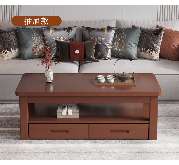 커피 테이블 거실 가구 현대 간단한 단단한 나무 티 테이블 서랍 로그와 새로운 중국 스타일 사무실 커피 테이블 작은 아파트스토어 가기