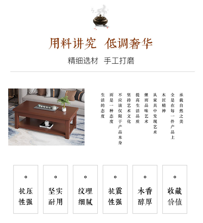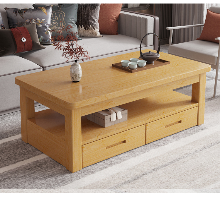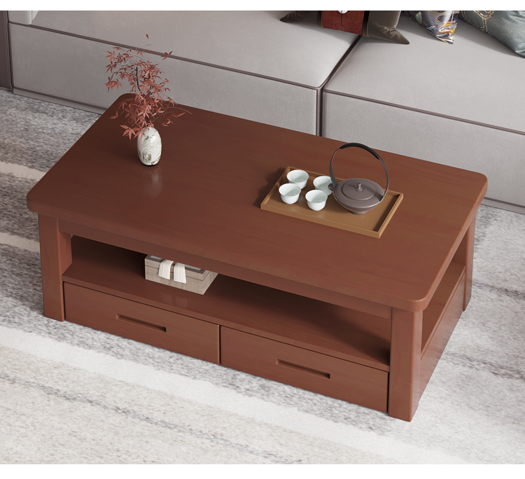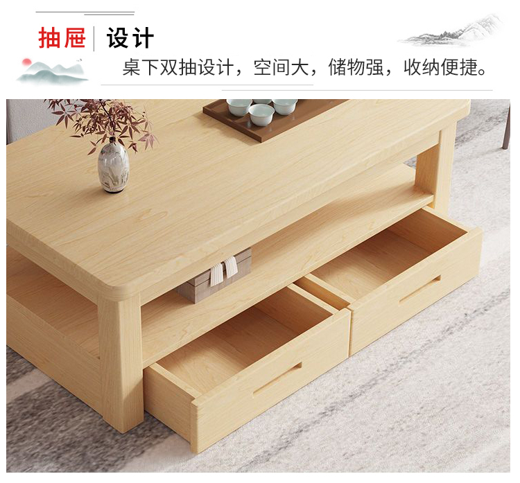 커피 테이블 거실 가구 현대 간단한 단단한 나무 티 테이블 서랍 로그와 새로운 중국 스타일 사무실 커피 테이블 작은 아파트