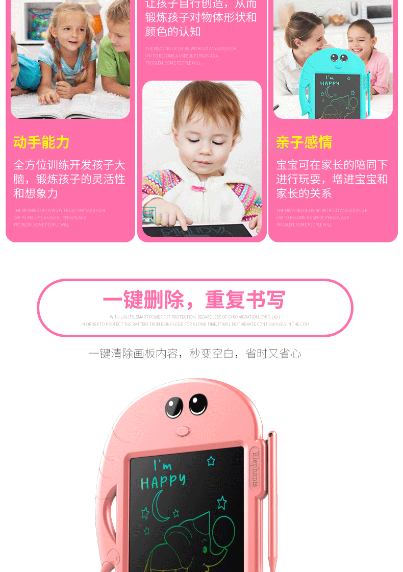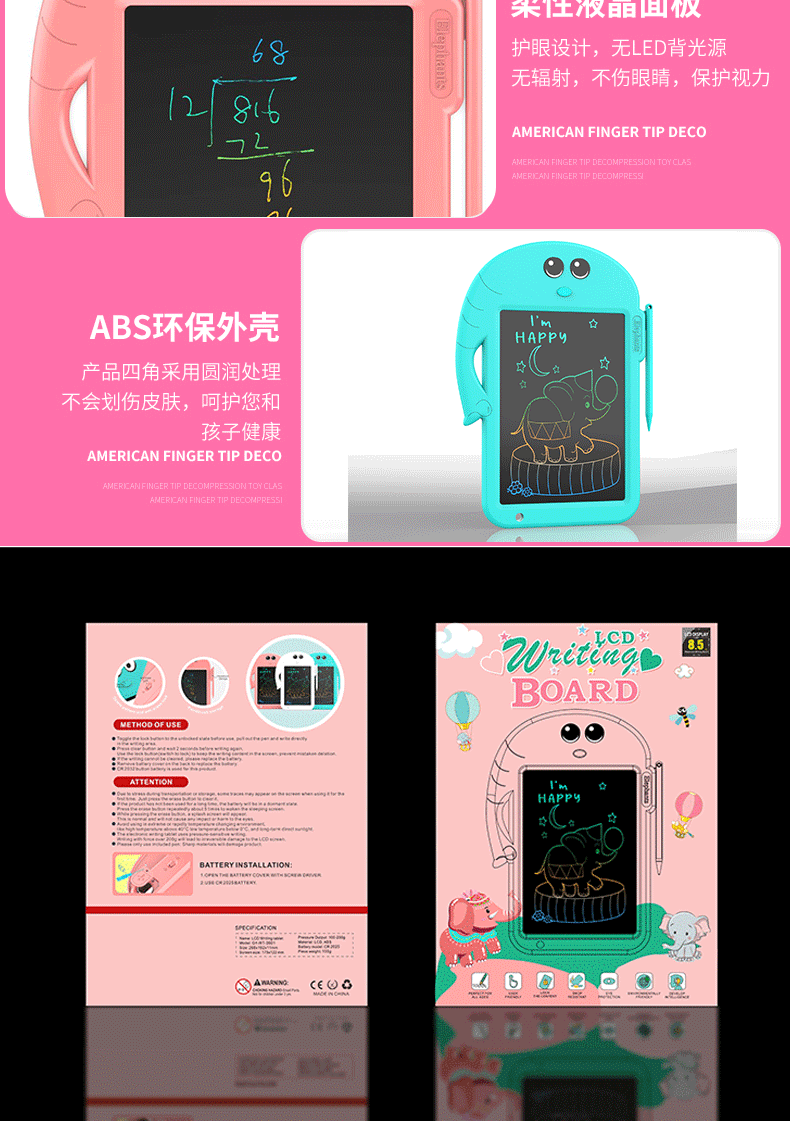 크로스 보더 아마존 뉴 8.8 인치 LCD 필기 보드 LCD 하이라이트 컬러 어린이 코끼리 낙서 드로잉 보드