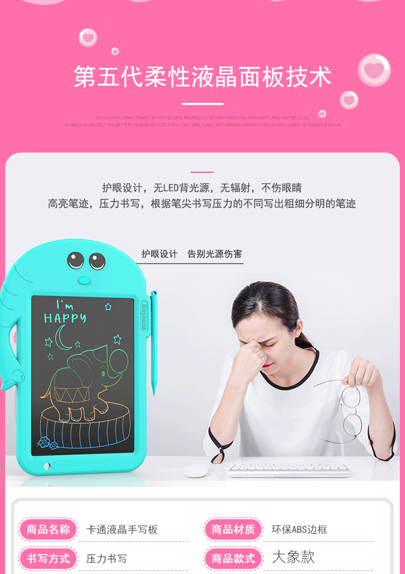 크로스 보더 아마존 뉴 8.8 인치 LCD 필기 보드 LCD 하이라이트 컬러 어린이 코끼리 낙서 드로잉 보드스토어 가기