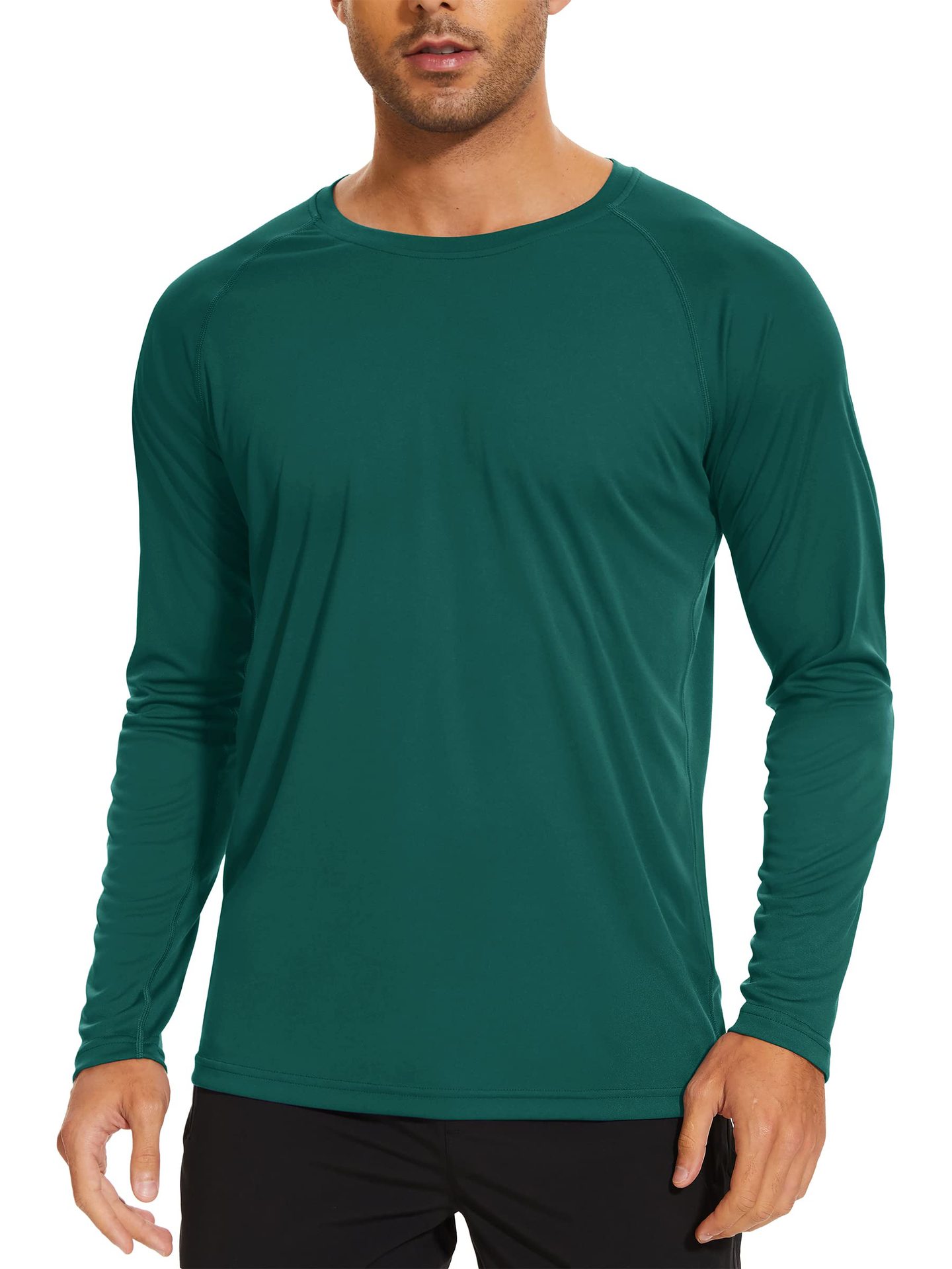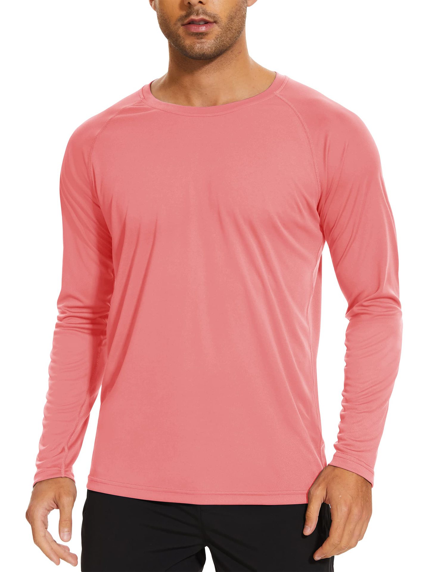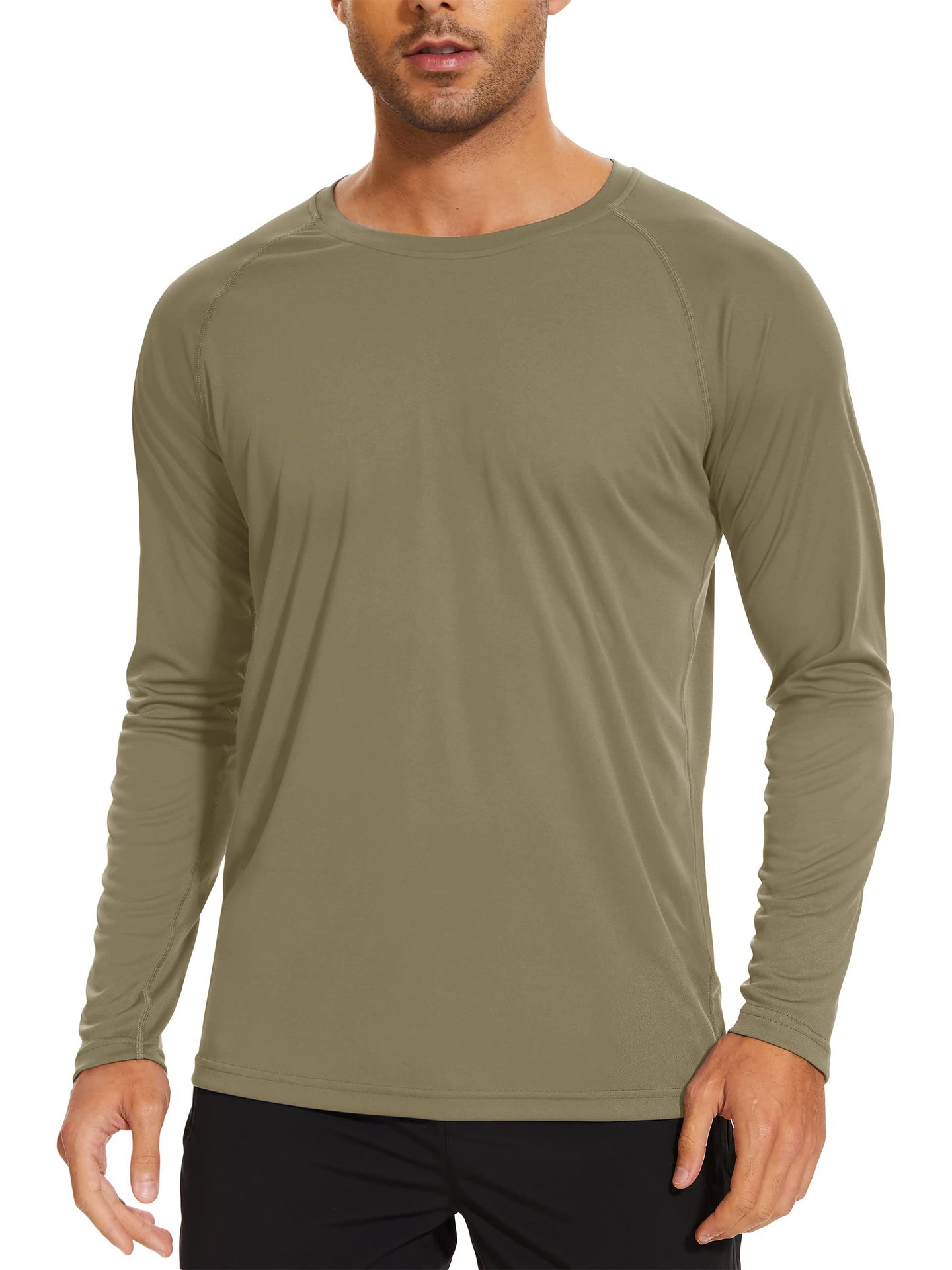 UPF50 + 아마존 자외선 차단제 긴 소매 아이스 실크 속건 단색 티셔츠 라운드 넥 슬림 피트니스 스포츠 트레이닝 재킷