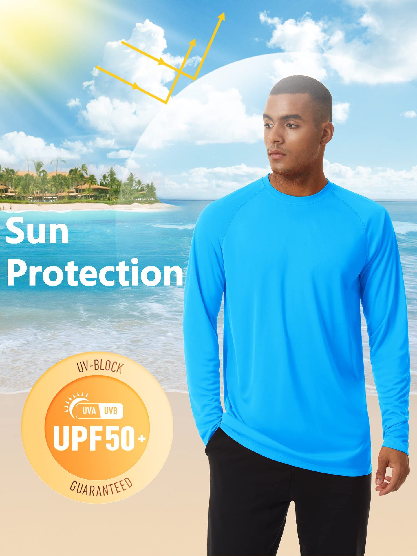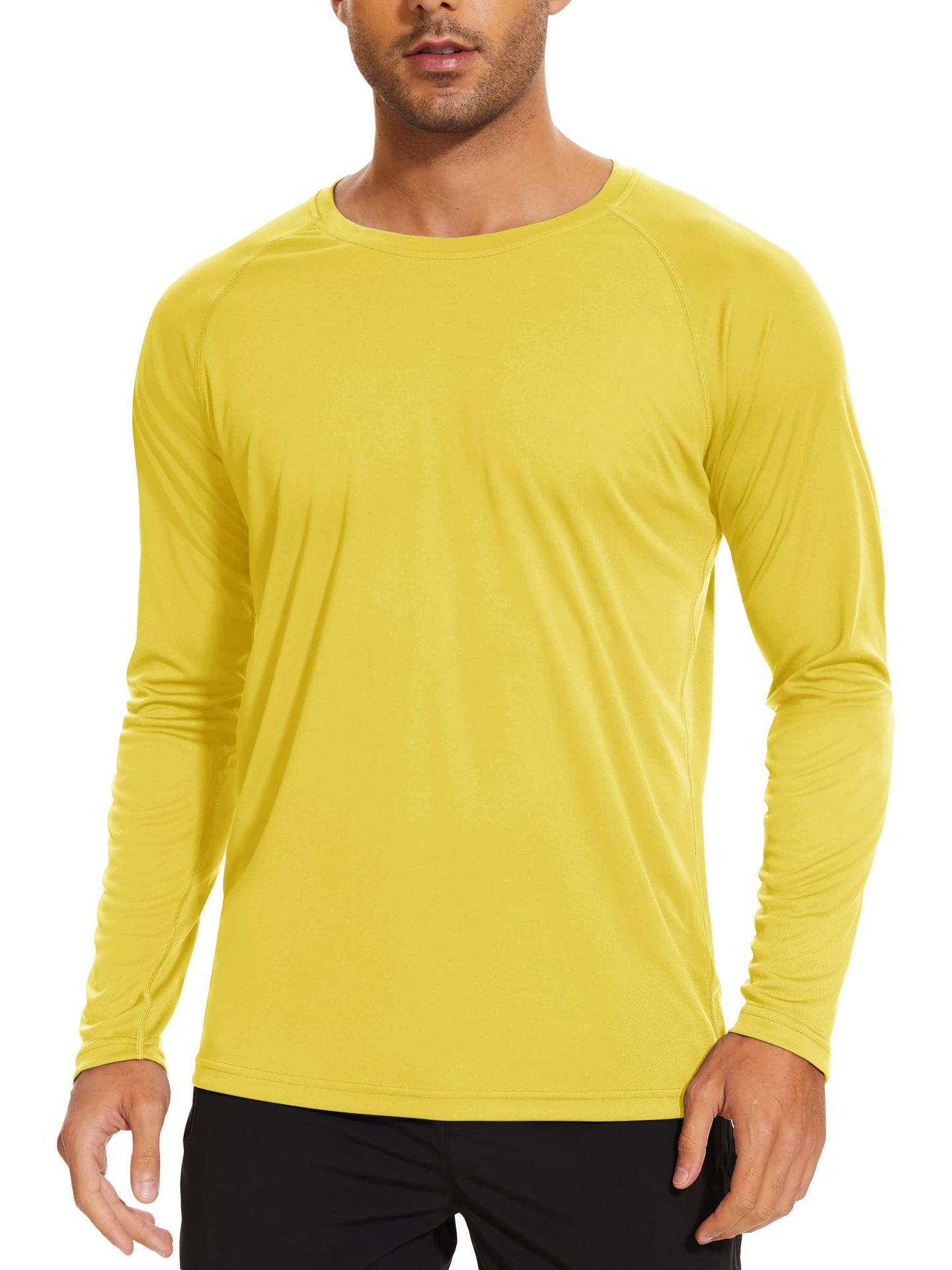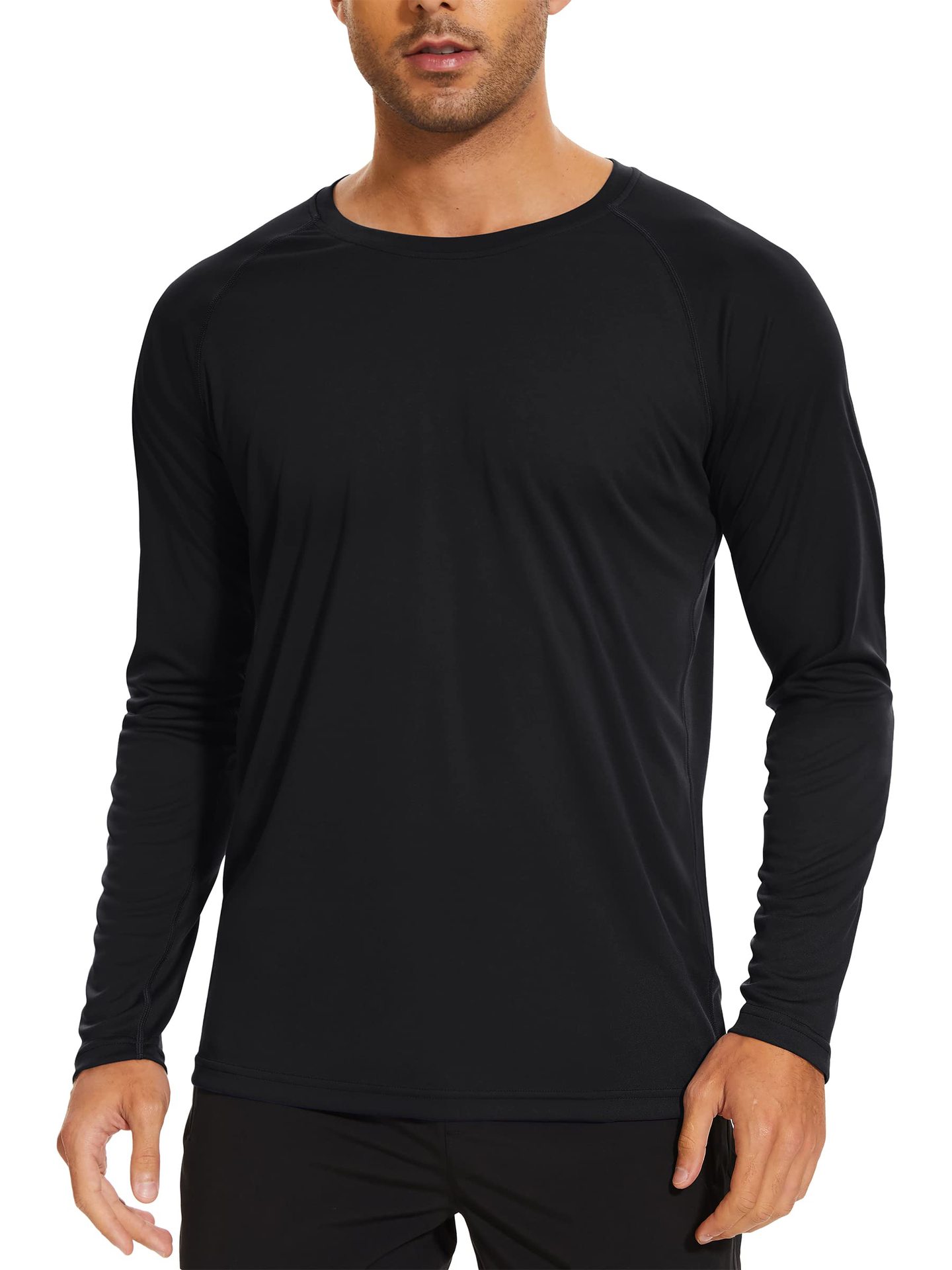 UPF50 + 아마존 자외선 차단제 긴 소매 아이스 실크 속건 단색 티셔츠 라운드 넥 슬림 피트니스 스포츠 트레이닝 재킷