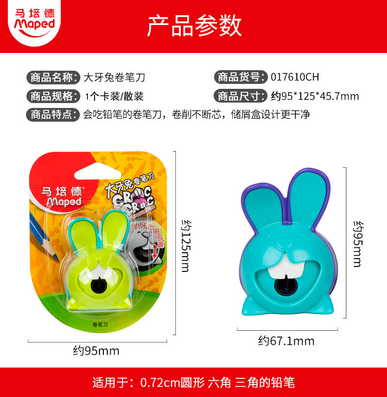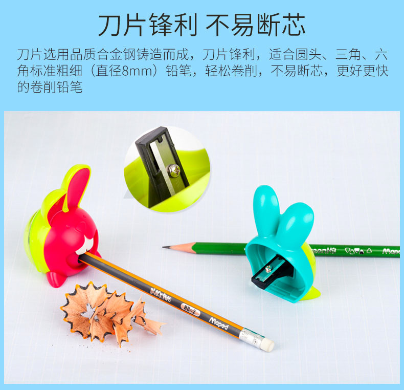 Ma Peide maped 큰 이빨 토끼 연필 깎이 연필 깎이 초등 학생을위한 만화 휴대용 연필 깎이