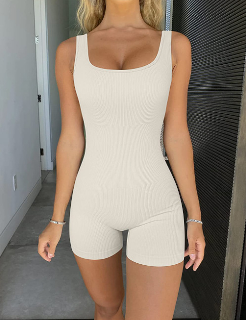 재고 원활한 스퀘어 칼라 스레드 반바지 점프 수트 피트니스 바디 빌딩 요가 의류 속건 통기성 꽉 끼는 여성용 점프 수트스토어 가기