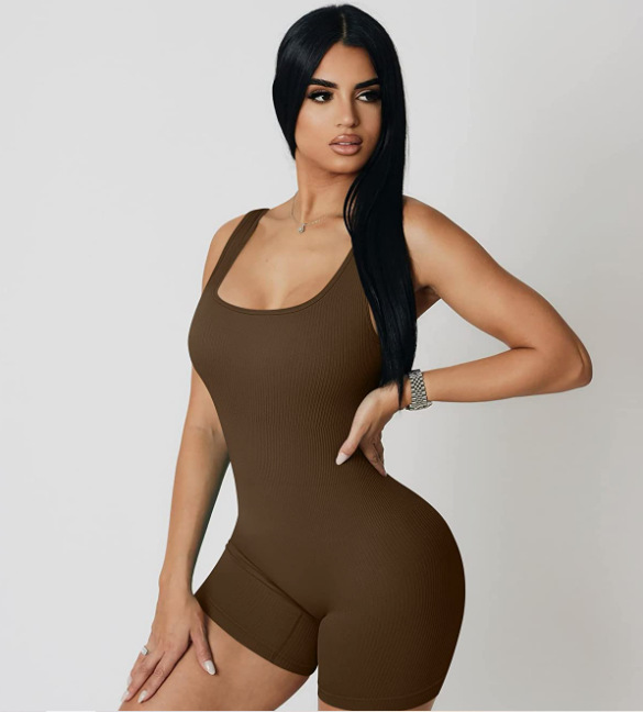 재고 원활한 스퀘어 칼라 스레드 반바지 점프 수트 피트니스 바디 빌딩 요가 의류 속건 통기성 꽉 끼는 여성용 점프 수트