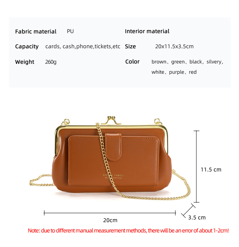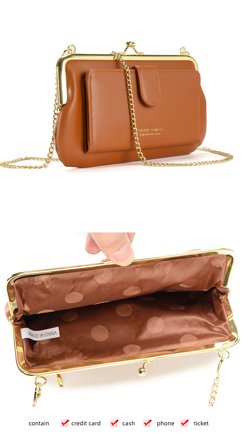 2023 새로운 멀티 카드 다기능 휴대 전화 가방 여성 가방 쉘 가방 숄더 크로스 바디 체인 가방 클립 프레임 가방 재고