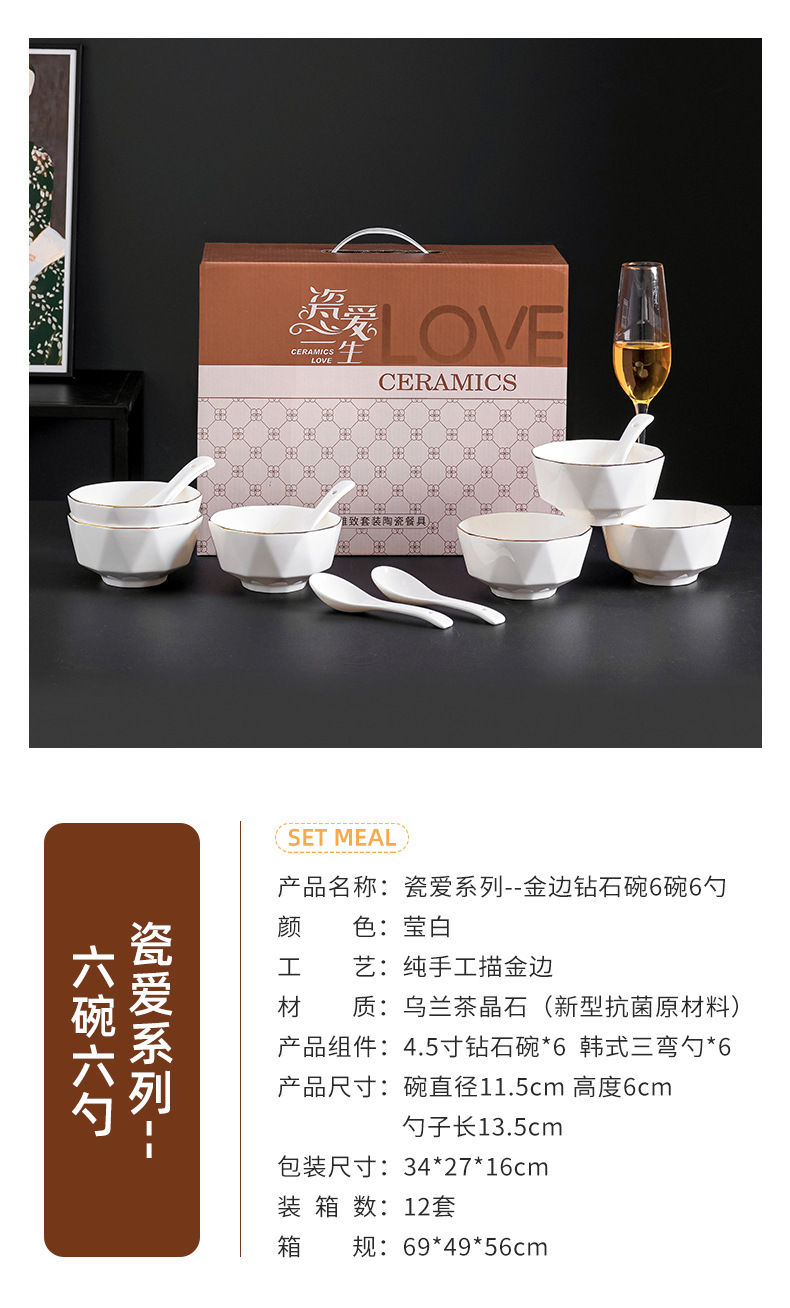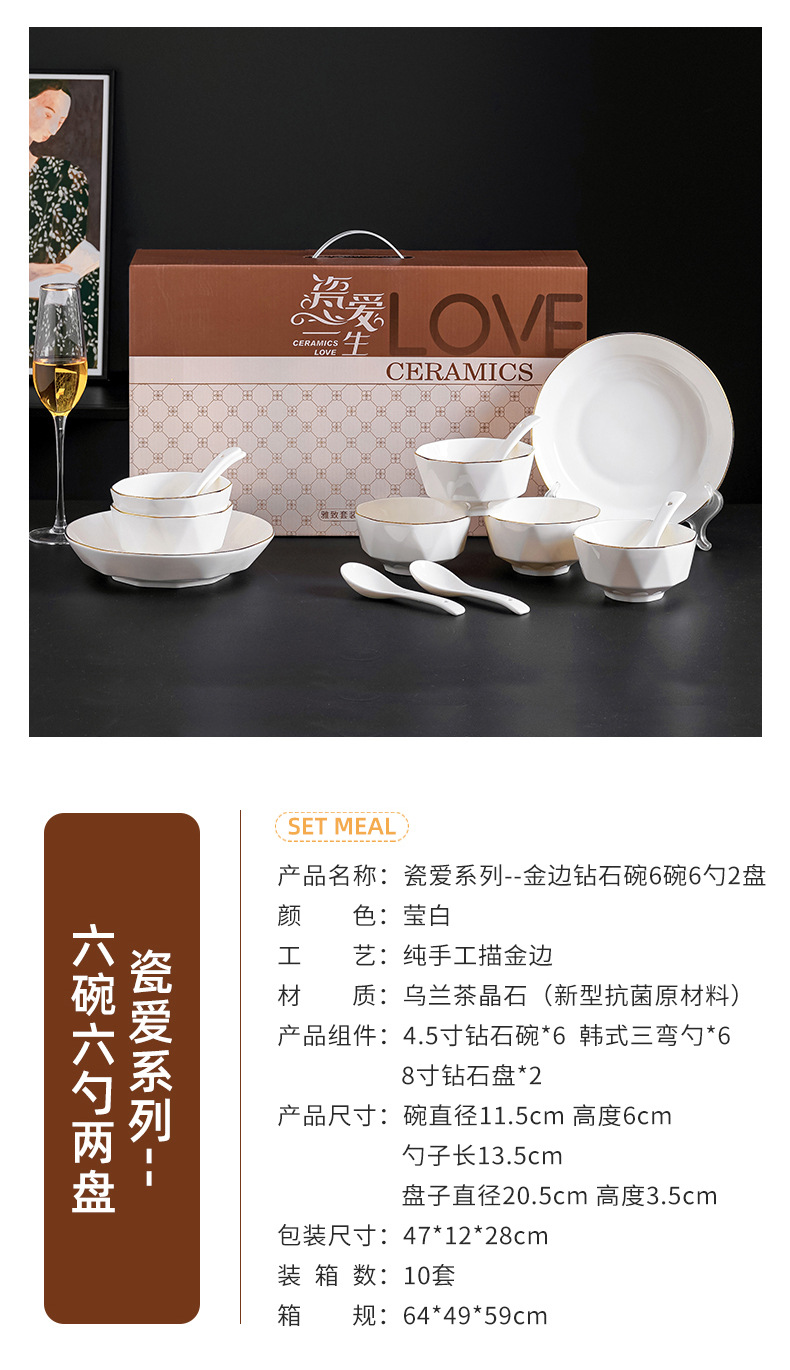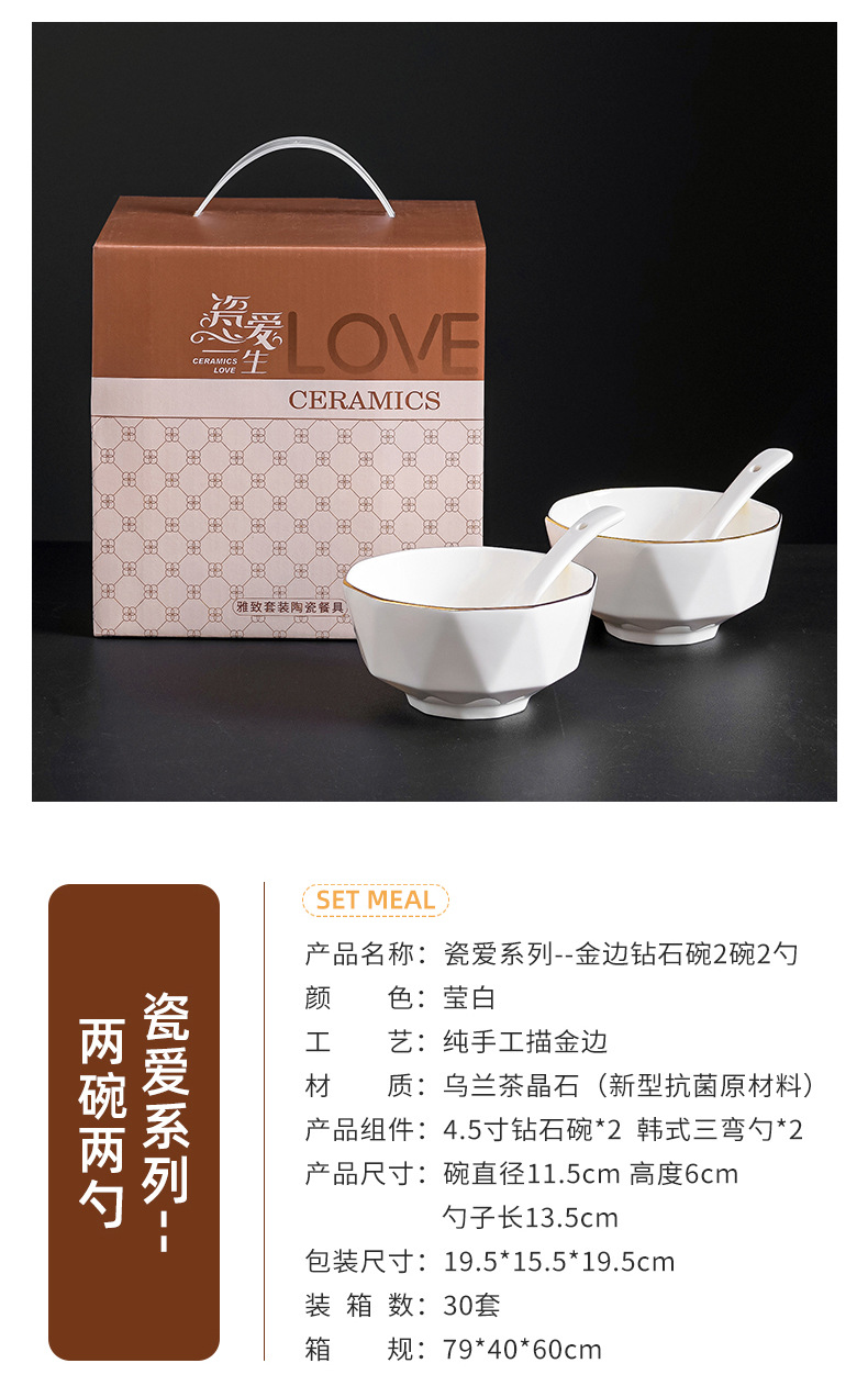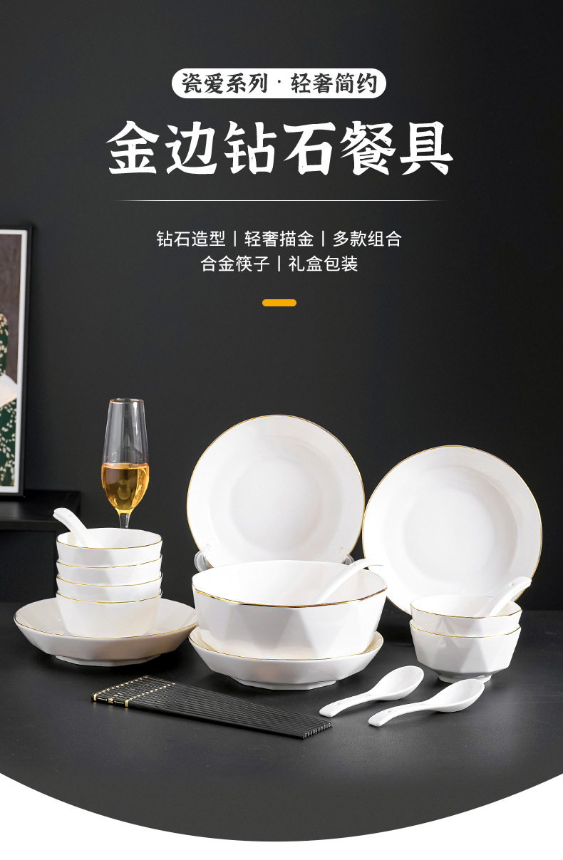 프놈펜 다이아몬드 그릇 세라믹 식기 가정용 그릇 숟가락 세트 간단한 단색 그릇 젓가락 세트 선물 상자 인쇄 로고