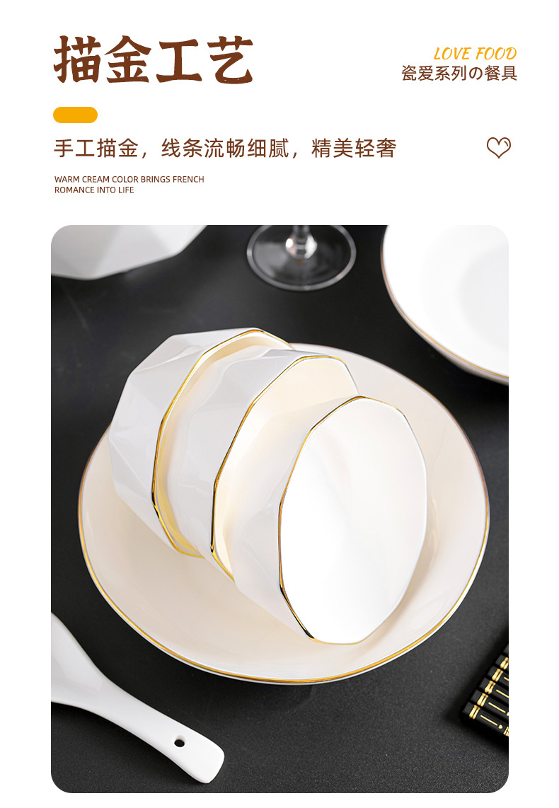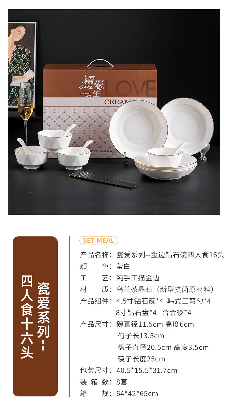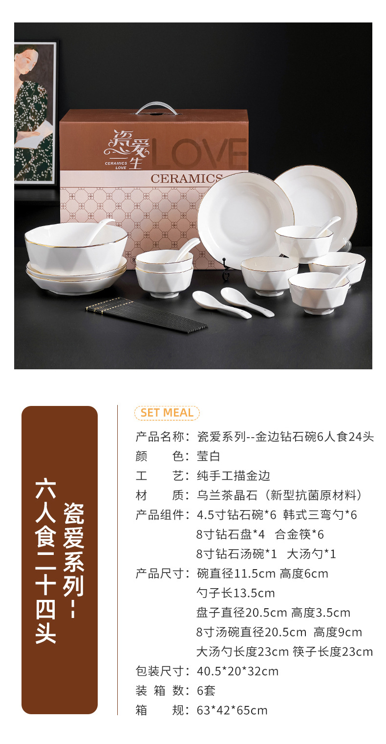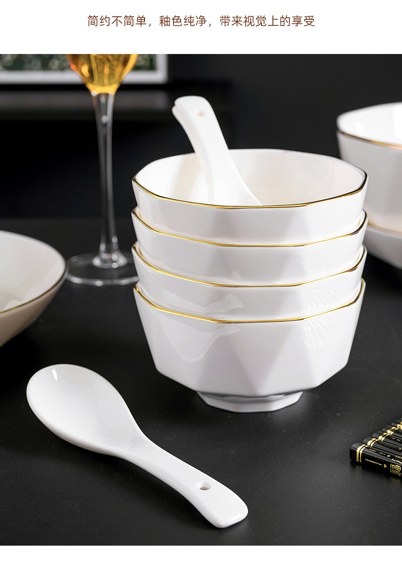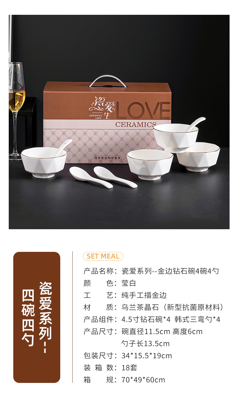프놈펜 다이아몬드 그릇 세라믹 식기 가정용 그릇 숟가락 세트 간단한 단색 그릇 젓가락 세트 선물 상자 인쇄 로고
