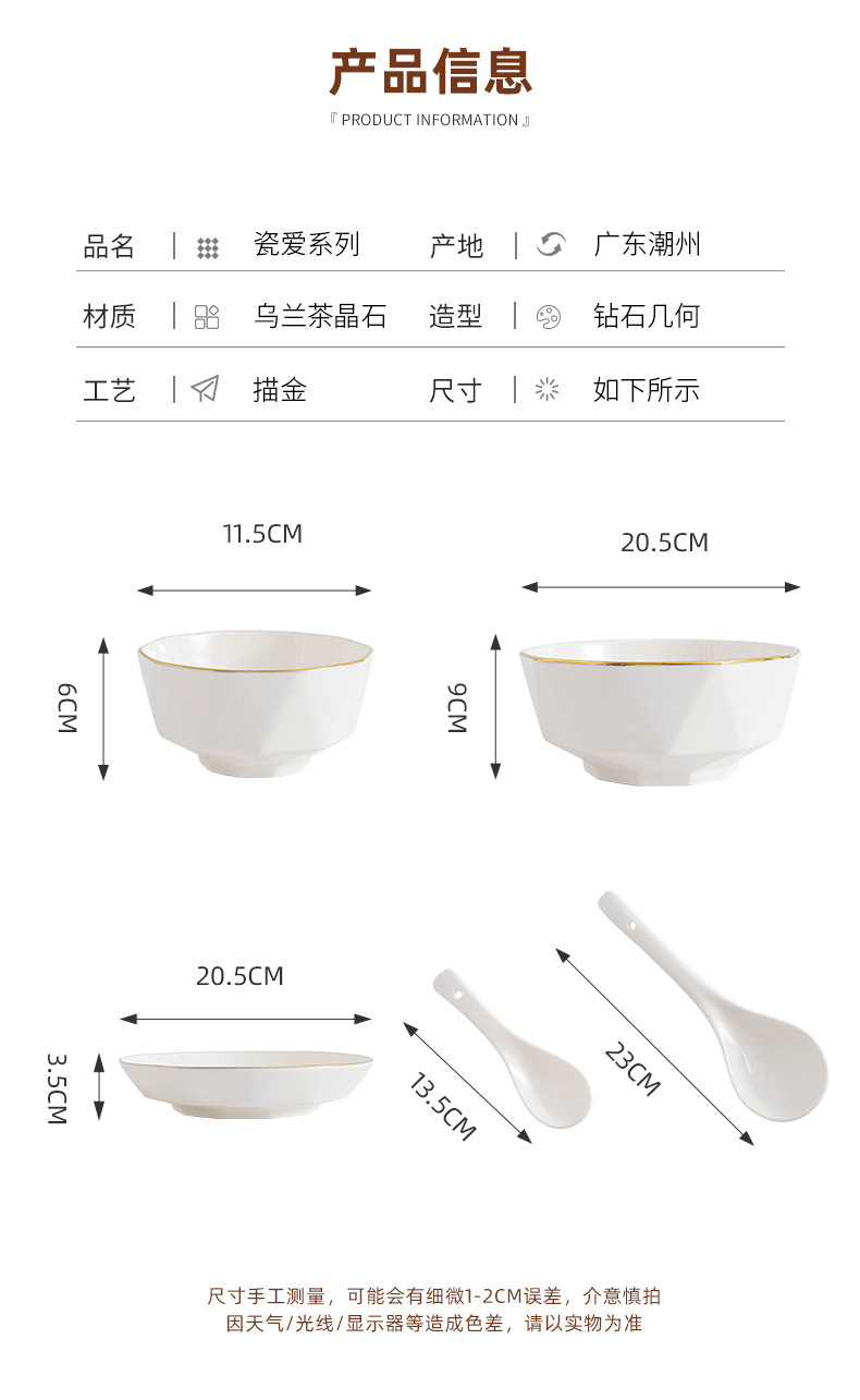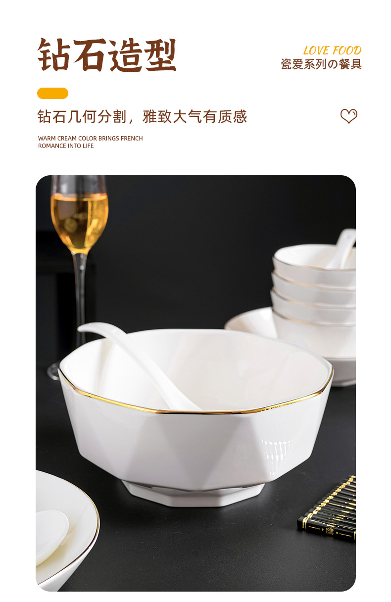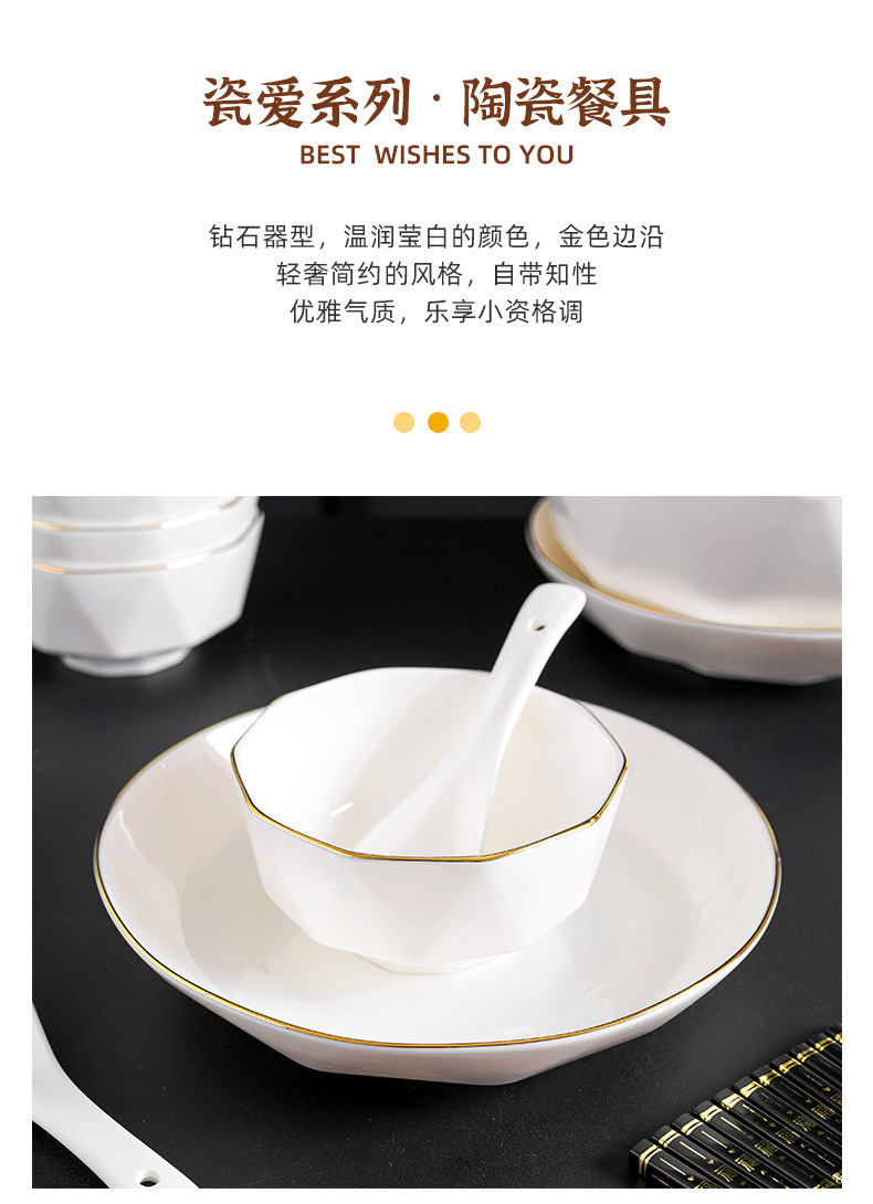 프놈펜 다이아몬드 그릇 세라믹 식기 가정용 그릇 숟가락 세트 간단한 단색 그릇 젓가락 세트 선물 상자 인쇄 로고스토어 가기