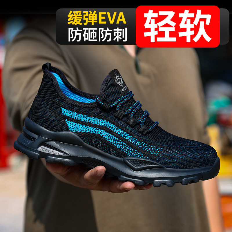국경 간 노동 보호 신발 남성용 충돌 방지 및 찌르기 방지 짠 경량 편안한 충격 흡수 안전 신발 건설 현장용 내마모성 및 탈취제 작업 신발스토어 가기