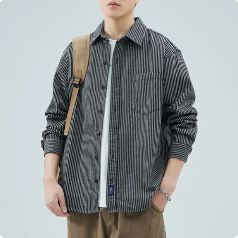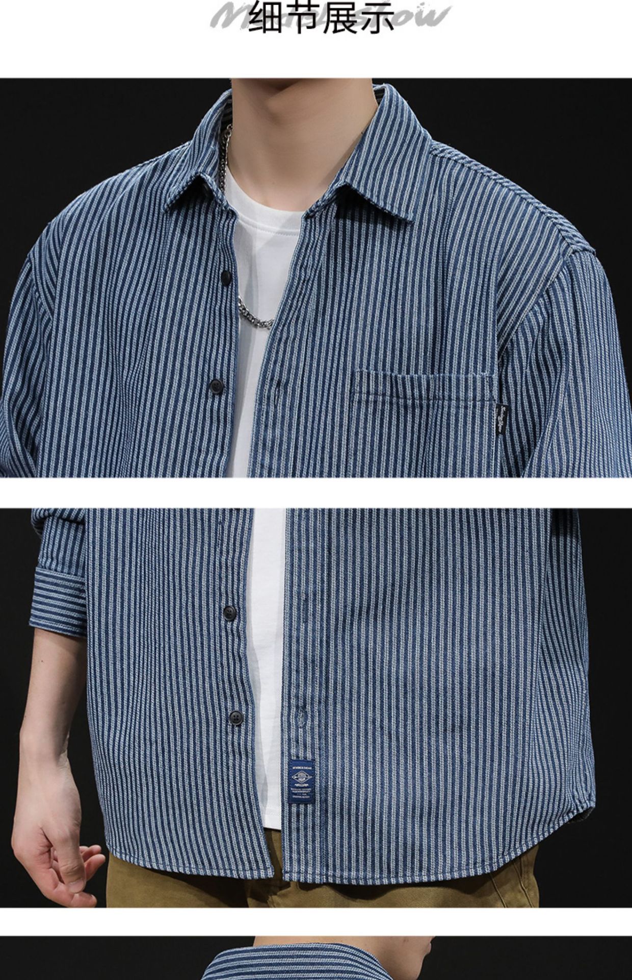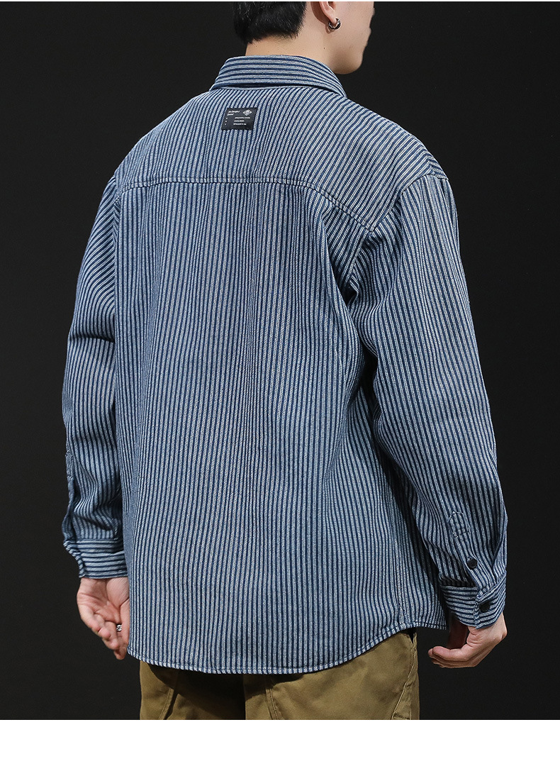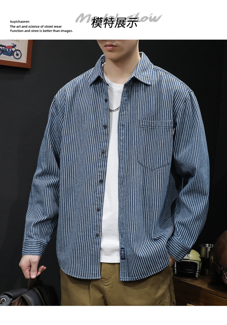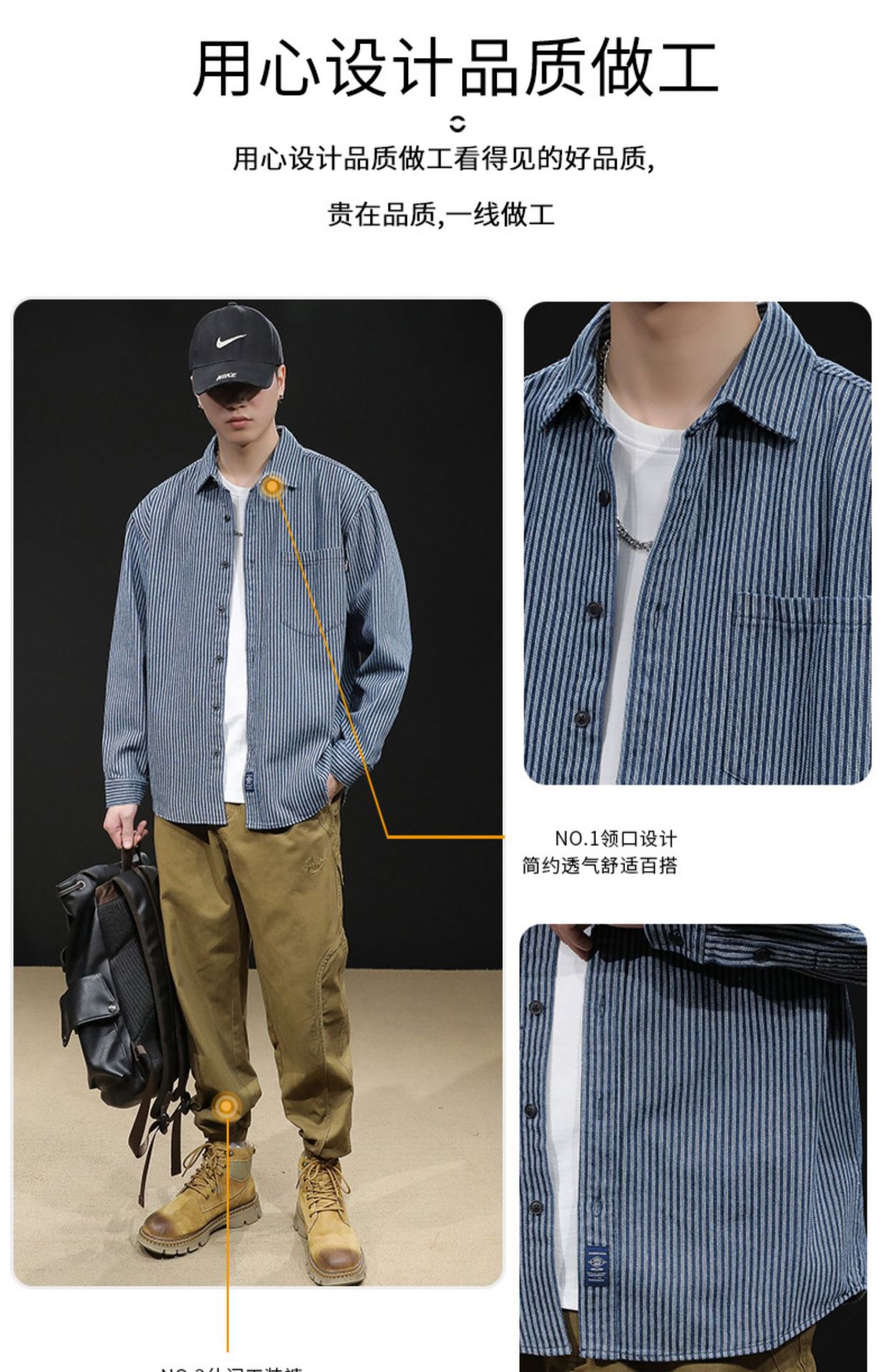 남성복 2025 신상 스트라이프 셔츠 재킷 남성 긴팔 캐주얼 상의 다용도 데님 셔츠 남성 가을 겨울 스타일스토어 가기