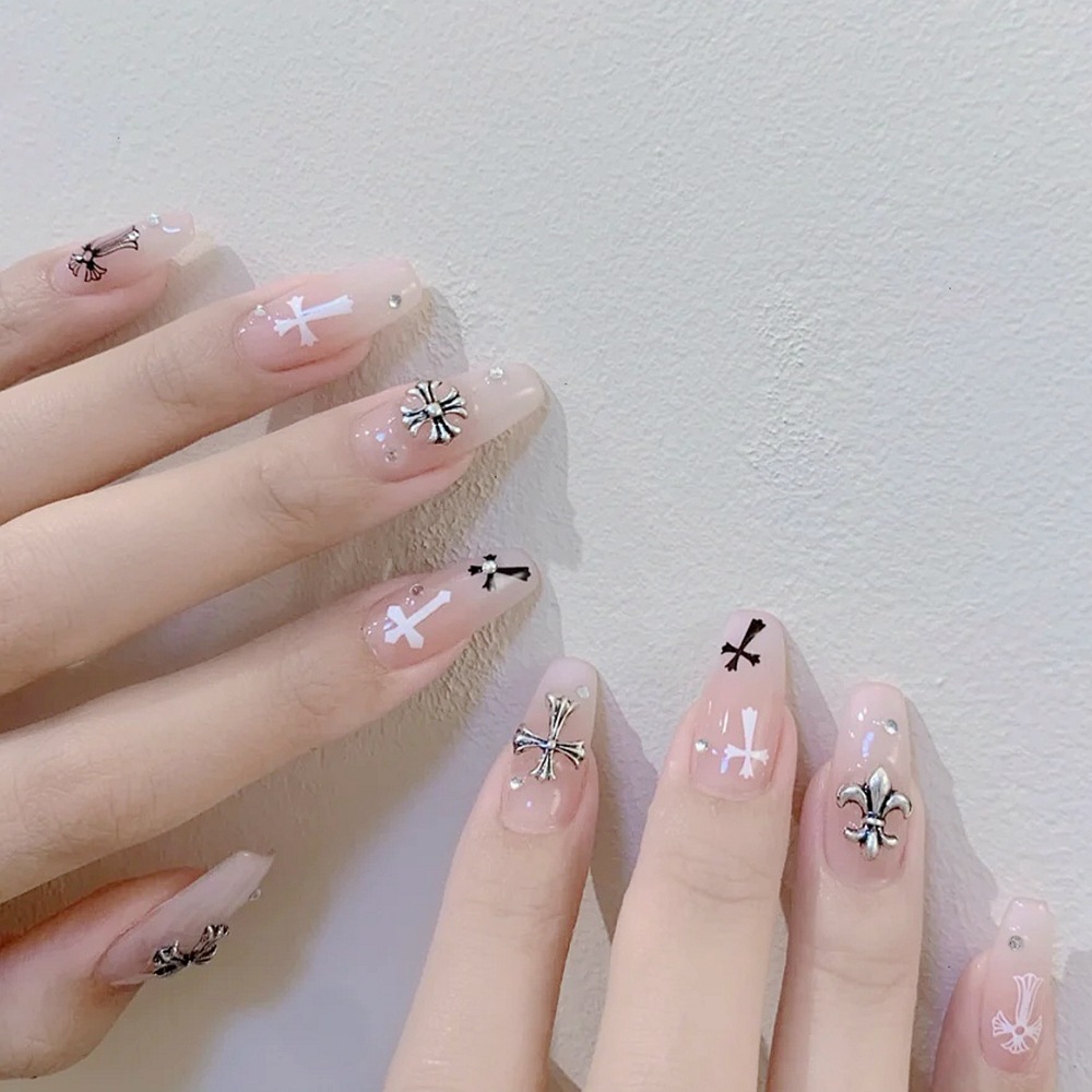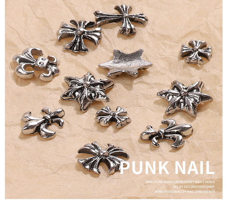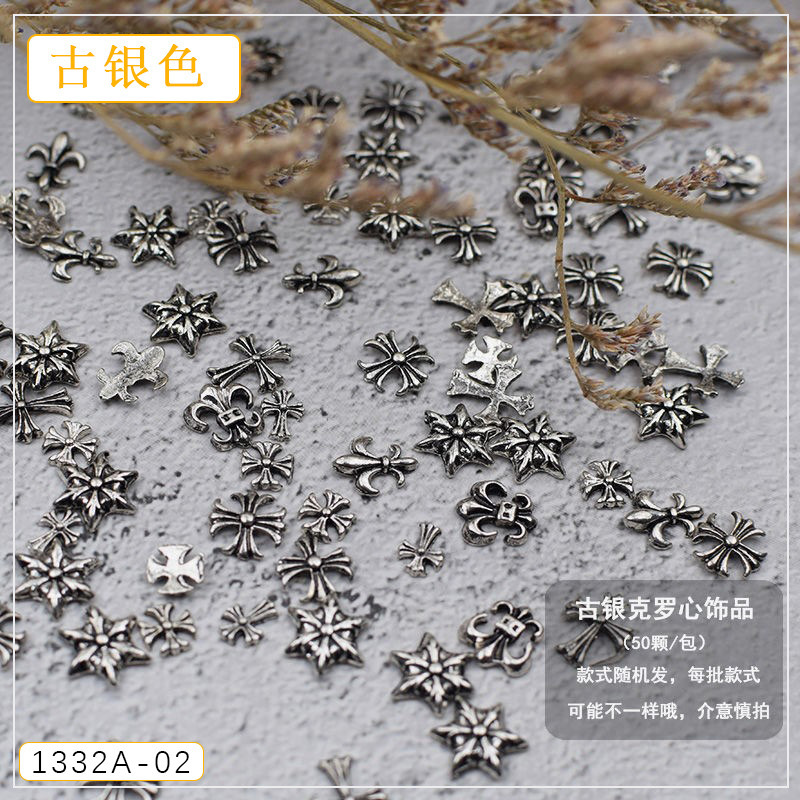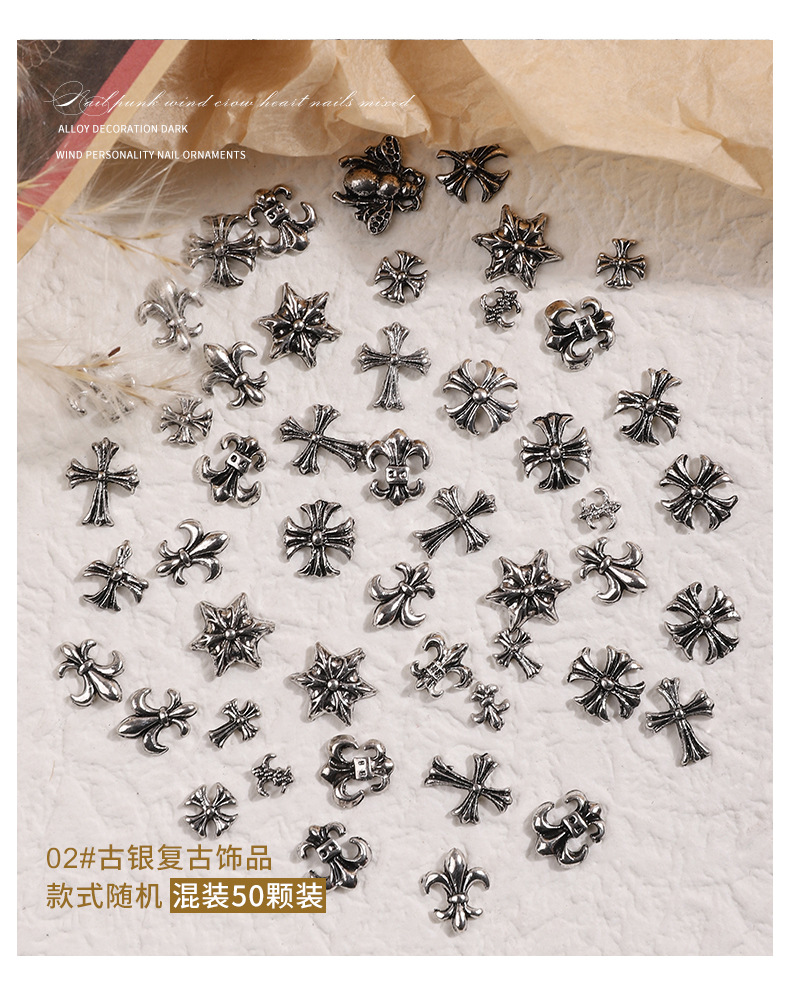 인터넷 연예인 폭발성 디아블로 스타일 빈티지 크로스 실버 금속 크로 하트 네일 장식 네일 액세서리 믹스