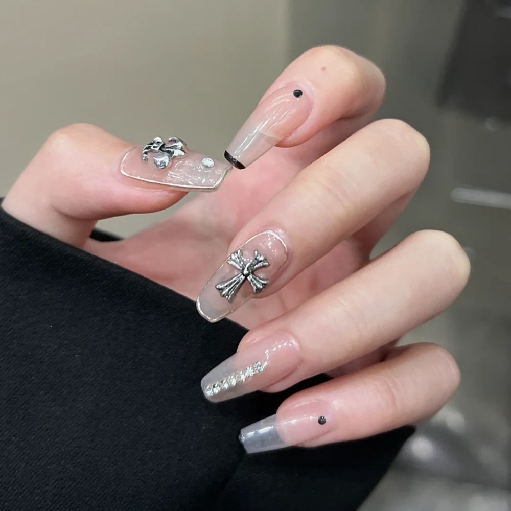 인터넷 연예인 폭발성 디아블로 스타일 빈티지 크로스 실버 금속 크로 하트 네일 장식 네일 액세서리 믹스스토어 가기