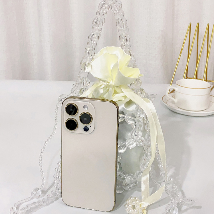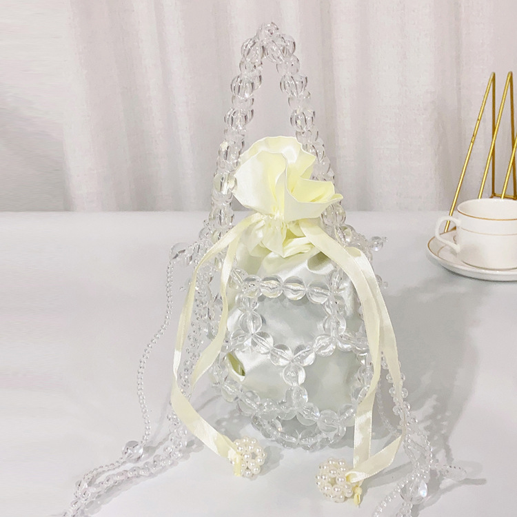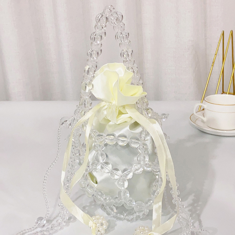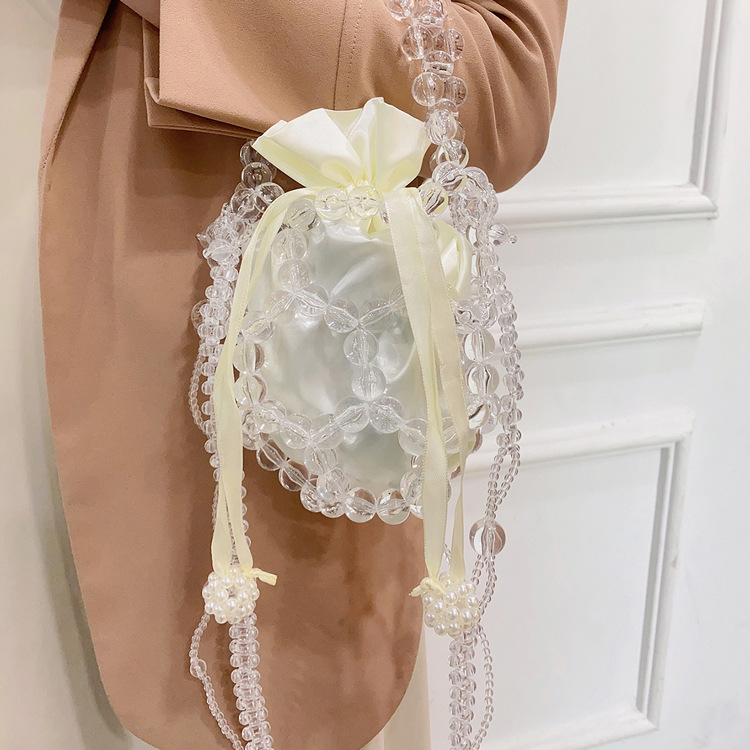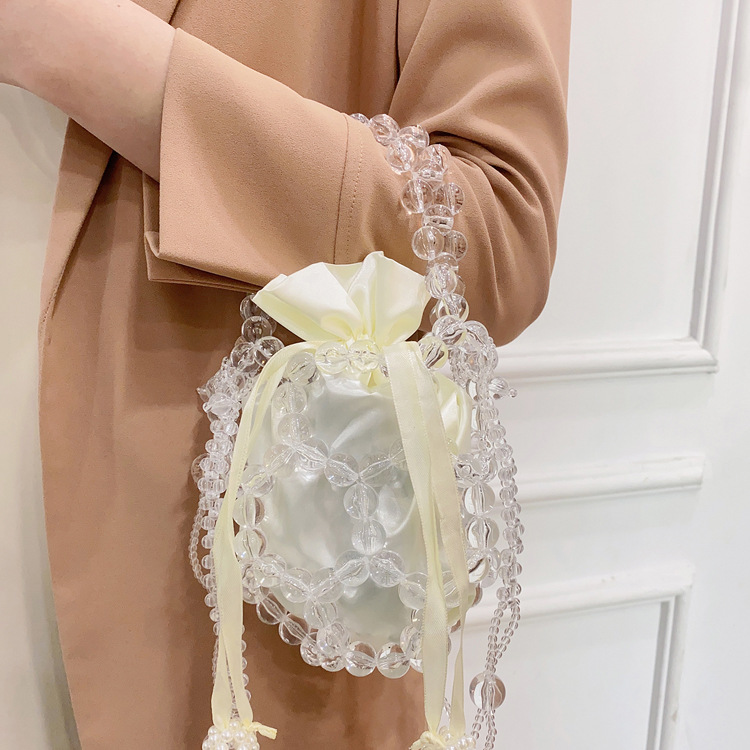 새로운 크로스 바디 스몰 백 진주 가방 수제 짠 비드 백 유행 투명 버킷 백 유행 휴대용 숄더백 여성용