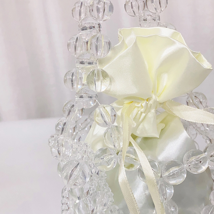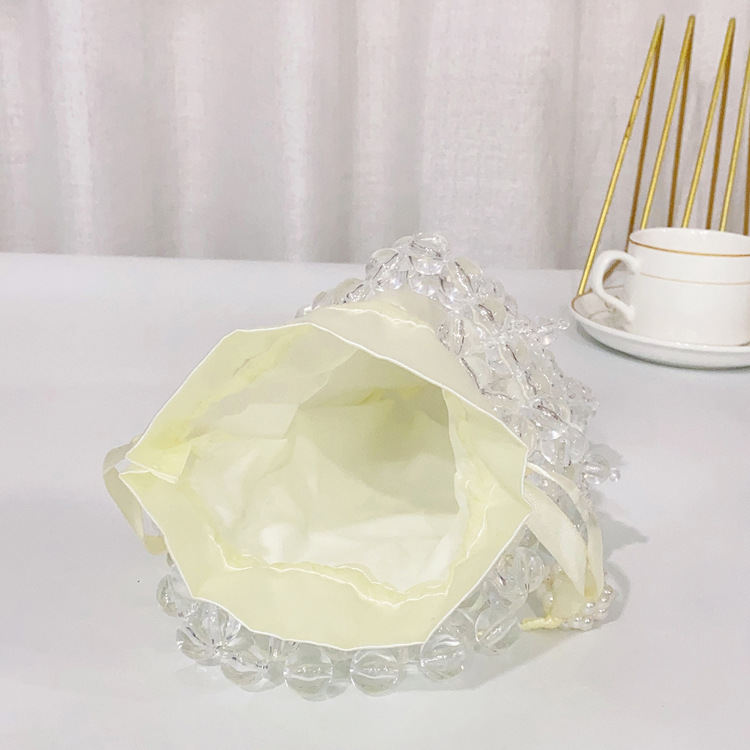 새로운 크로스 바디 스몰 백 진주 가방 수제 짠 비드 백 유행 투명 버킷 백 유행 휴대용 숄더백 여성용스토어 가기