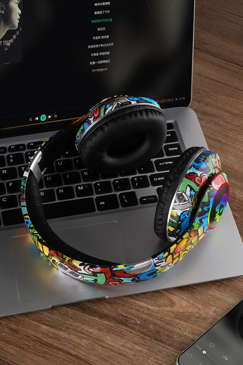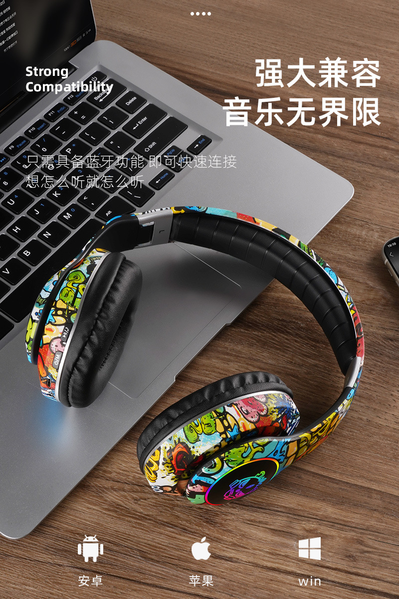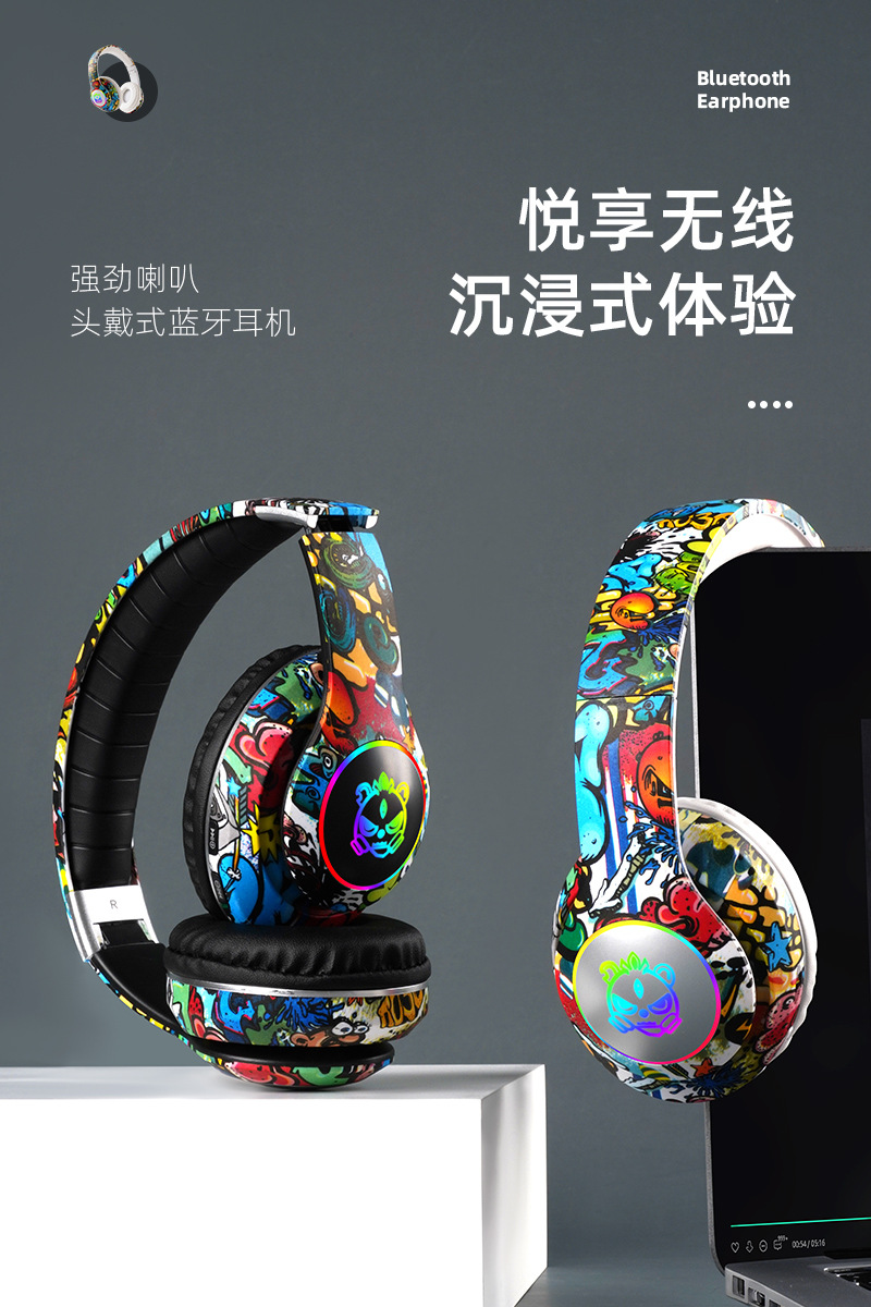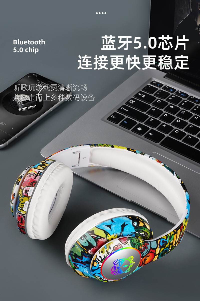 [새로운] 크로스 보더 헤드셋 블루투스 헤드셋 발광 게임을 삽입 할 수 있습니다 카드 낙서 국가 조수 블루투스 무선 헤드셋